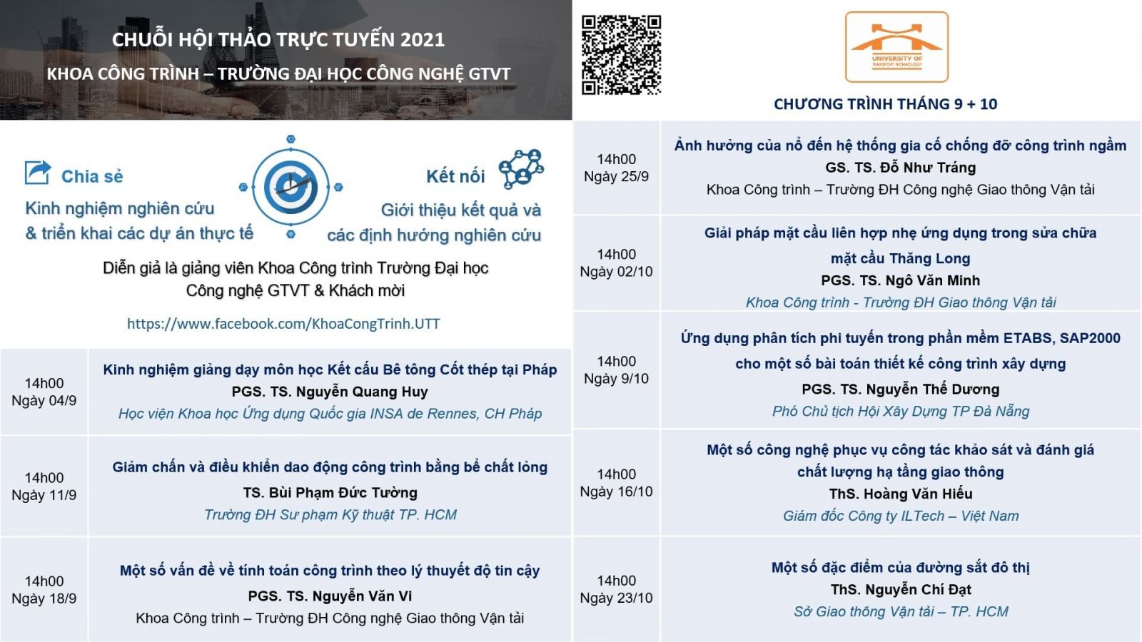 Chuỗi Hội thảo trực tuyến Khoa công trình tháng 9-10 năm 2021