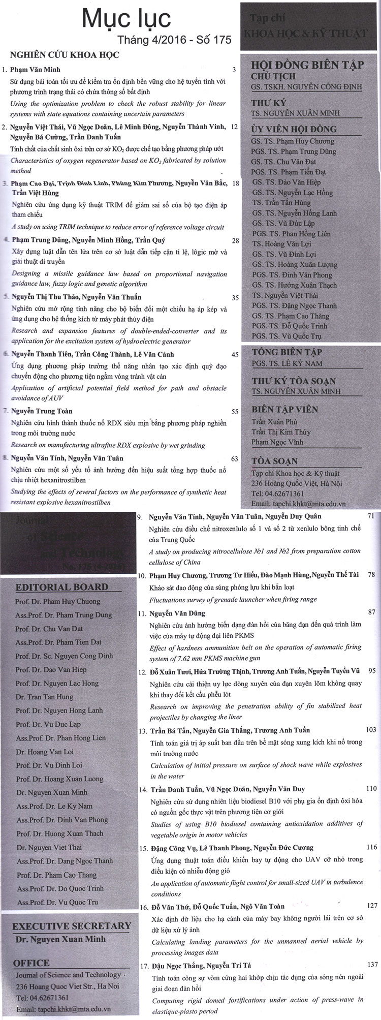 Danh mục bài bào Tạp chí Khoa học và Kỹ thuật - số 175 (4/2016) - Học viện Kỹ thuật Quân sự 19/09/2016 10:09