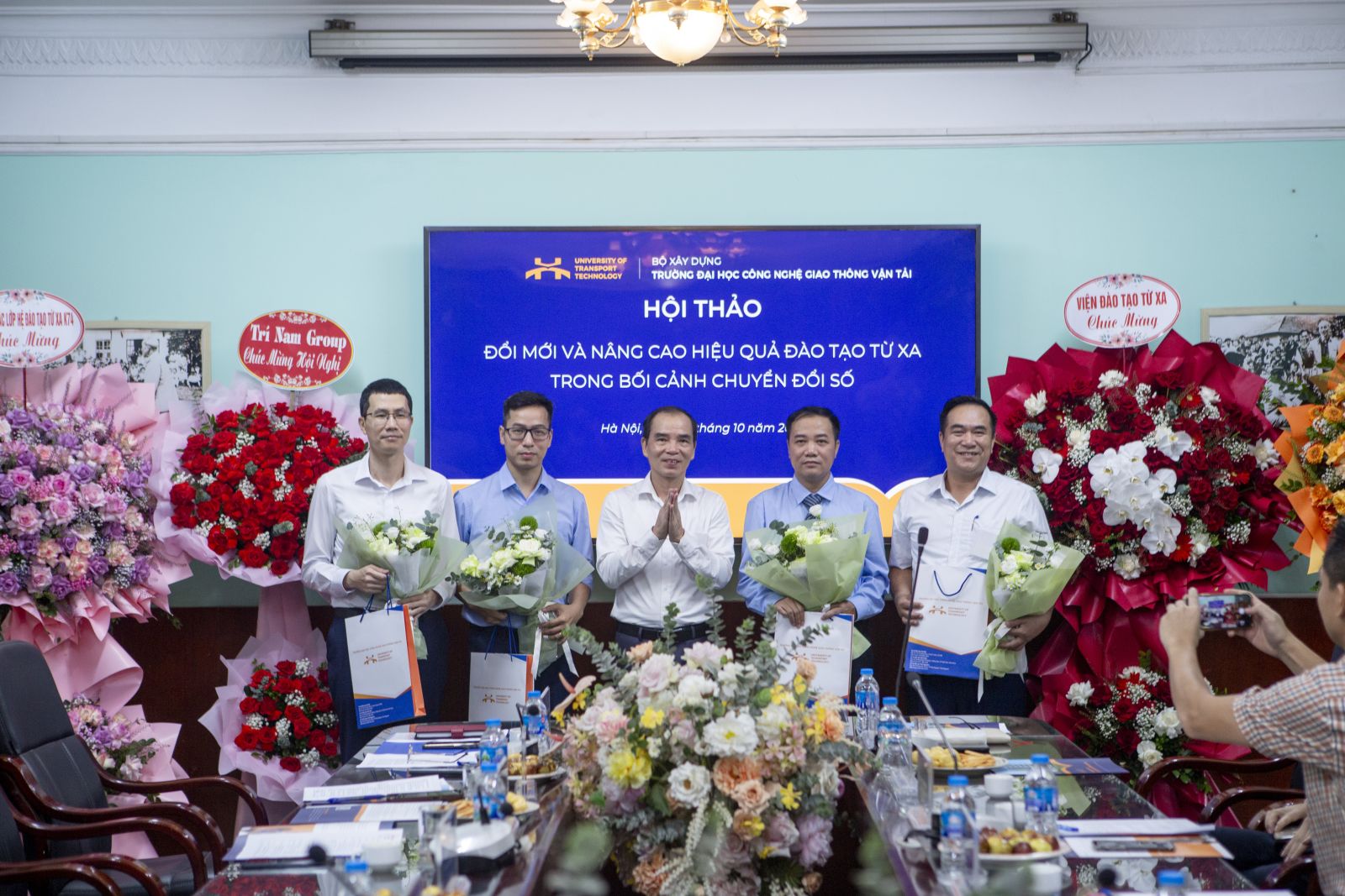 Hội thảo hôm nay là diễn đàn khoa học để chúng ta cùng nhìn lại thực trạng, chia sẻ kinh nghiệm và đề xuất các giải pháp đổi mới, góp phần phát triển đào tạo từ xa theo hướng hiện đại, bền vững. Đây cũng là nhiệm vụ trọng tâm trong chiến lược phát triển của Nhà trường, nhằm mở rộng cơ hội học tập cho mọi người, gắn kết chặt chẽ với chuyển đổi số, góp phần xây dựng xã hội học tập suốt đời và cung cấp nguồn nhân lực chất lượng cao cho sự phát triển kinh tế - xã hội. Ý nghĩa này càng đặc biệt khi Trường được lựa chọn là một trong 13 cơ sở giáo dục đại học dẫn dắt mạng lưới Trung tâm đào tạo xuất sắc và tài năng trong lĩnh vực Công nghệ giao thông và Hạ tầng tiên tiến, thông minh.