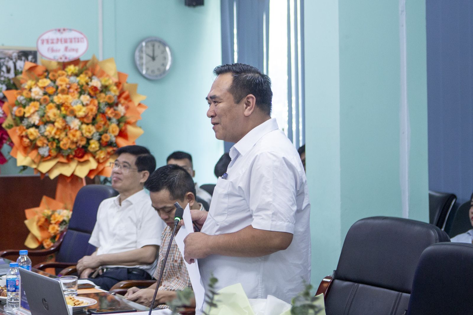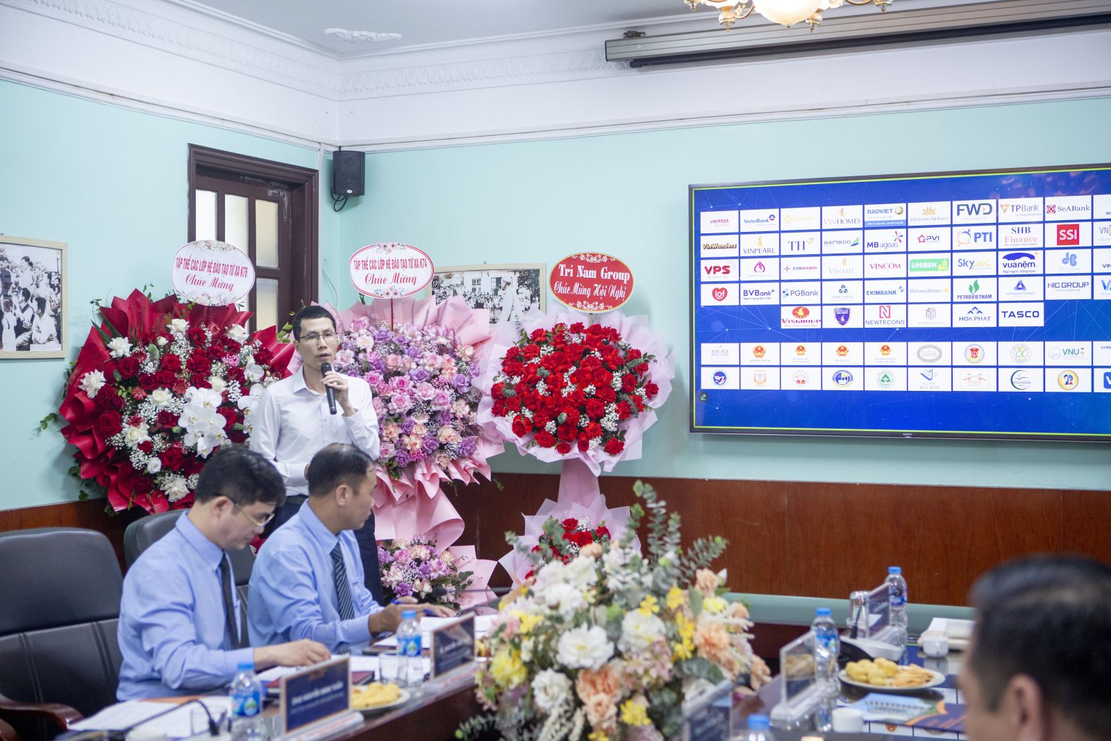 TS. Nguyễn Văn Lâm - Phó Hiệu trưởng Nhà trường tặng hoa cho các diễn giả