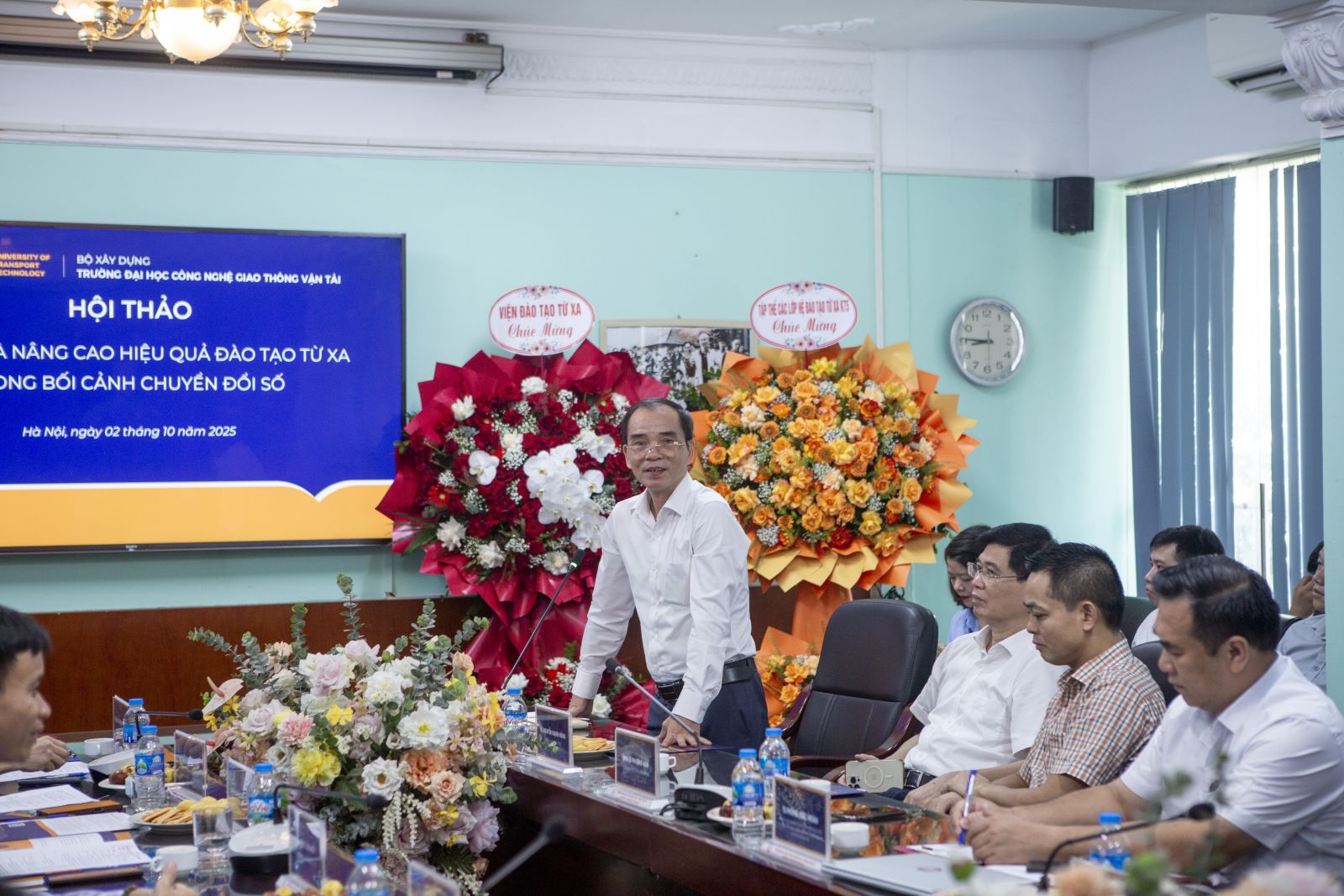 Sáng ngày 02/10/2025, Trường Đại học Công nghệ GTVT (UTT) đã tổ chức thành công Hội thảo “Đổi mới và nâng cao hiệu quả đào tạo từ xa trong bối cảnh chuyển đổi số”. Sự kiện có sự góp mặt của đại diện lãnh đạo Nhà trường, chuyên gia, nhà khoa học, cùng đại diện các tập đoàn công nghệ và đối tác giáo dục, nhằm thống nhất chiến lược phát triển đào tạo từ xa theo hướng mở, linh hoạt và chất lượng cao.