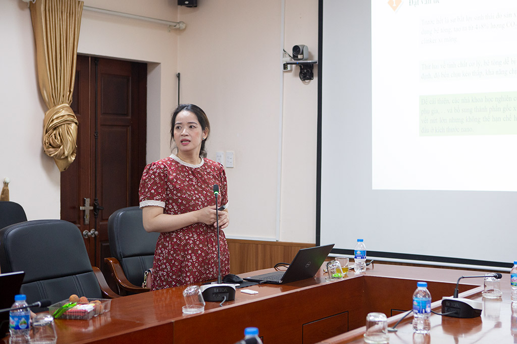 Báo cáo viên Nguyễn Thị Thu Ngà chia sẻ chủ đề “Tổng quan về một số bê tông tiên tiến trên thế giới”