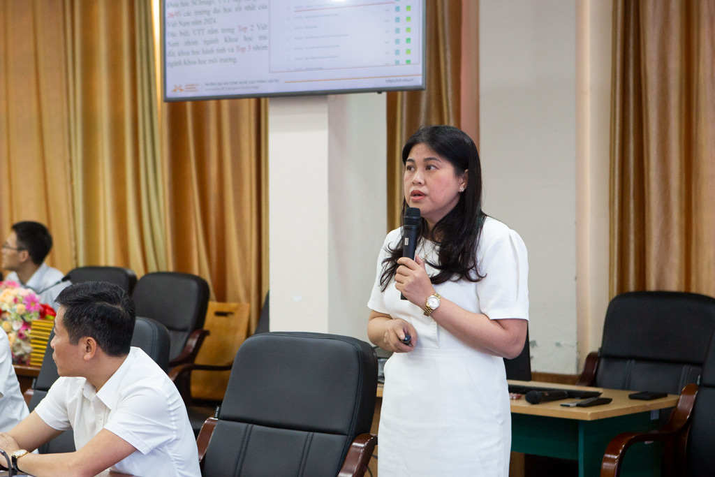 Theo đó, TS. Ngô Thị Thanh Hương nhấn mạnh kết quả xếp hạng của Trường Đại học Công nghệ GTVT năm 2024. Theo Bảng xếp hạng Viet Nam’s University Rankings (VNUR)- là bảng xếp hạng các trường đại học của Việt Nam đầu tiên được công bố trong lãnh thổ Việt Nam, năm 2024 Trường Đại học Công nghệ GTVT được xếp vị trí số 48 trên tổng số 193 cơ sở giáo dục đại học của Việt Nam. Theo tổ chức xếp hạng các cơ sở nghiên cứu khoa học SCImago, UTT xếp hạng thứ 26/45 các trường đại học tốt nhất của Việt Nam năm 2024. Đặc biệt, UTT nằm trong Top 2 Việt Nam nhóm ngành Khoa học trái đất, Khoa học hành tinh và Top 3 nhóm ngành Khoa học môi trường.