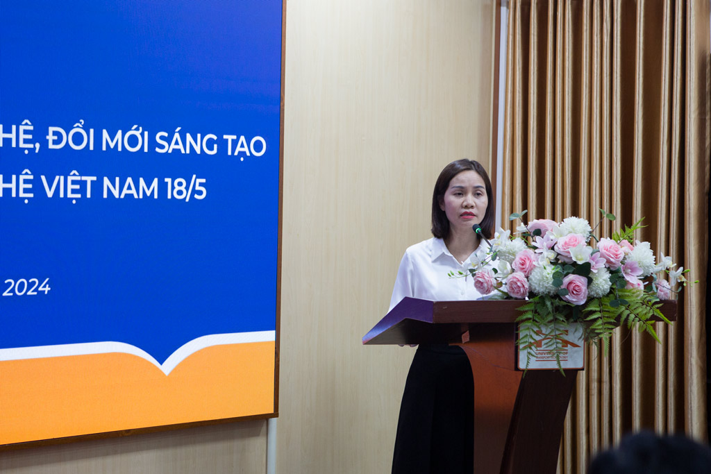 Tại Hội nghị, TS. Ngô Thị Thanh Hương - Trưởng phòng KHCN & HTQT đã báo cáo sơ kết thực hiện nhiệm vụ KHCN, ĐMST của Nhà trường trong năm học 2023-2024 và triển khai nhiệm vụ trọng tâm năm học 2024-2025.