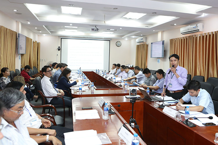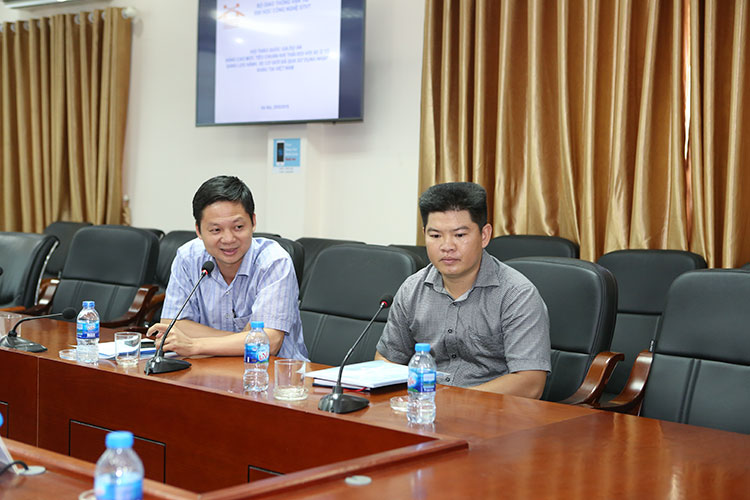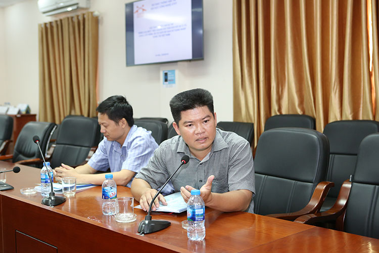 PGS.TS. Vũ Ngọc Khiêm - Phó Hiệu trưởng Nhà trường - Chủ nhiệm đề tài "Nâng cao mức tiêu chuẩn khí thải đối với xe ô tô đang lưu hành, xe cơ giới đã qua sử dụng nhập khẩu" chủ trì Hội thảo