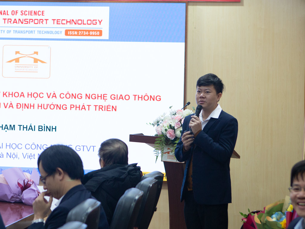 TS. Phạm Thái Bình- Phó Trưởng phòng KHCN & HTQT, Trường Đại học Công nghệ GTVT trình bày tham luận “Giới thiệu Tạp chí Khoa học và Công nghệ Giao thông: Các chính sách và định hướng phát triển”