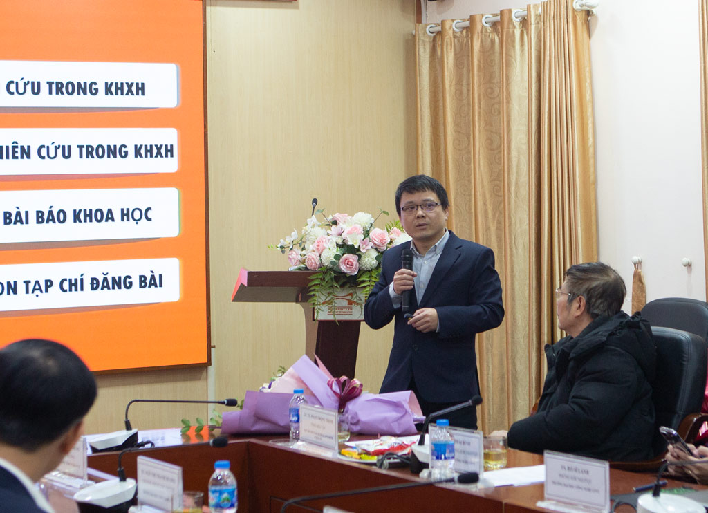 TS. Đỗ Thanh Long – Phòng Đào tạo Sau Đại học, Trường Đại học Công nghệ GTVT trình bày báo cáo “Chia sẻ kinh nghiệm nghiên cứu, viết và đăng bài trên các tạp chí uy tín ngành Khoa học xã hội”