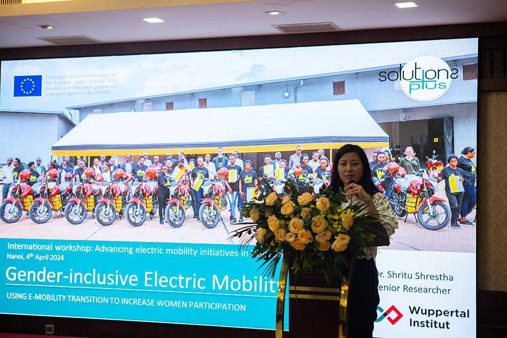 Tiếp đến là phần chia sẻ với chủ đề “Lồng ghép giới trong giao thông điện” 3 phần: Giới thiệu dự án; Giới thiệu Dự án tại Việt Nam; Lồng ghép giới trong giao thông điện.