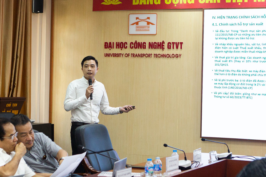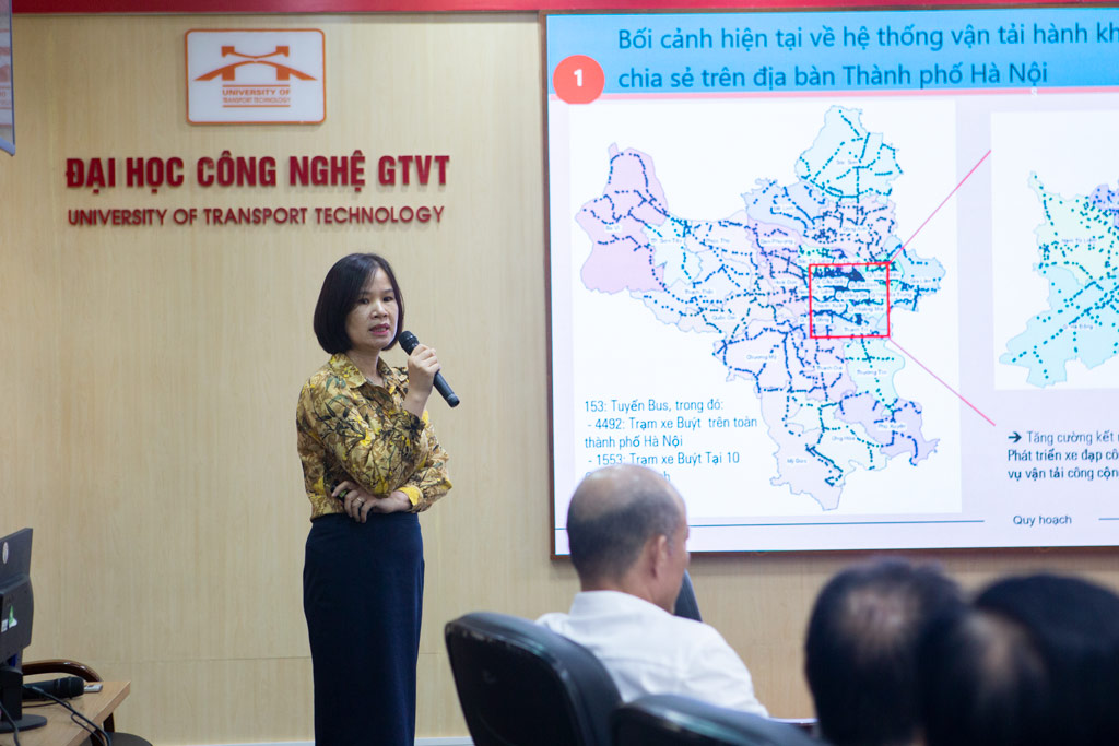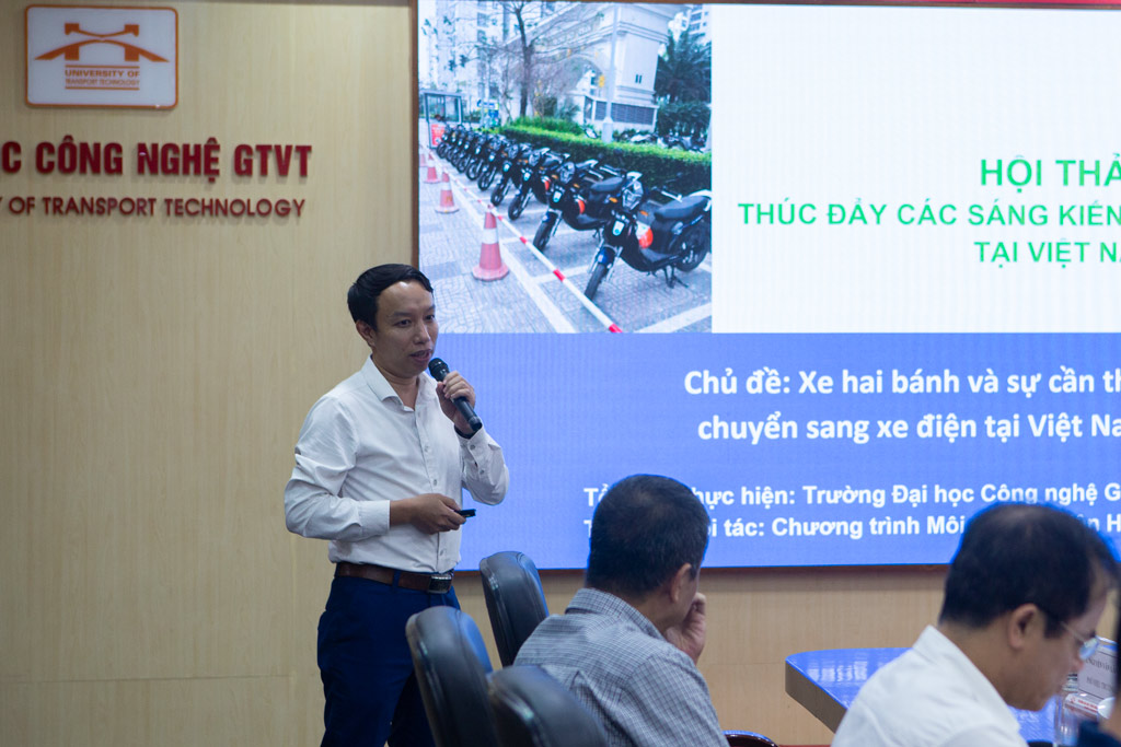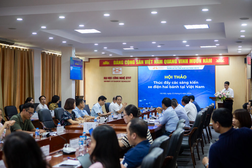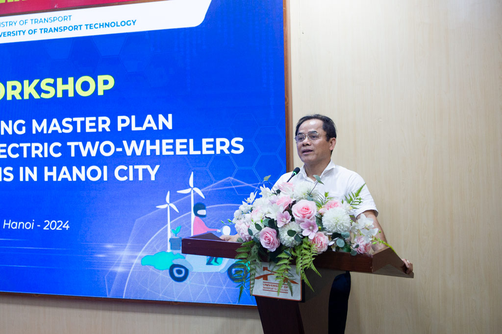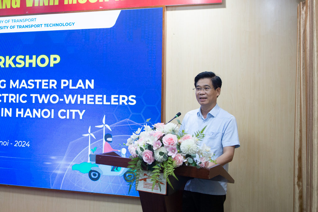 Tại Hội thảo, PGS.TS. Vũ Ngọc Khiêm - Bí thư Đảng ủy, Chủ tịch Hội đồng Trường nhấn mạnh, tại Dự án hợp tác với Chương trình Môi trường Liên Hợp Quốc “Xu hướng di chuyển bằng xe điện tại Việt Nam”, UTT đã thực hiện 3 giai đoạn từ năm 2018 đến nay gồm các nội dung chính: tiến hành nghiên cứu xây dựng đường cơ sở nhiên liệu cho xe hai bánh, xe ô tô các hãng ở Việt Nam, đây chính là cơ sở để Nhà trường đề xuất và làm cơ sở quan trọng để TP. Hà Nội, Bộ GTVT, các Bộ có liên quan xem xét ban hành các chính sách về xây dựng tiêu chuẩn, quy chuẩn tiêu thụ nhiên liệu, phát thải, khung sử dụng nhiên liệu hóa thạch sang giao thông điện; nghiên cứu những vấn đề về giới khi di chuyển dòng xe điện tại Việt Nam; nghiên cứu đề xuất chính sách để thúc đẩy xe điện hai bánh tại Việt Nam. Ở dự án thứ hai là dự án thí điểm về mô hình xe điện hai bánh chia sẻ phục vụ kết nối phương tiện vận tải hành khách công cộng tại thủ đô Hà Nội, trong đó có tuyến từ nhà chờ BRT Văn khê tới Trung tâm thương mại AEON Hà Đông và ngược lại. Từ kết quả thử nghiệm cùng sự học hỏi kinh nghiệm các chuyên gia ở trong và ngoài nước, Nhà trường đã xây dựng được bản đề xuất chính sách về phát triển xe điện hai bánh chia sẻ, kết nối người dân với phương tiện công cộng. Chính sách này đã được thảo luận tại nhiều hội thảo, hội nghị ở trong nước và quốc tế và đã nhận được phản hồi rất tích cực của Sở GTVT Hà Nội.