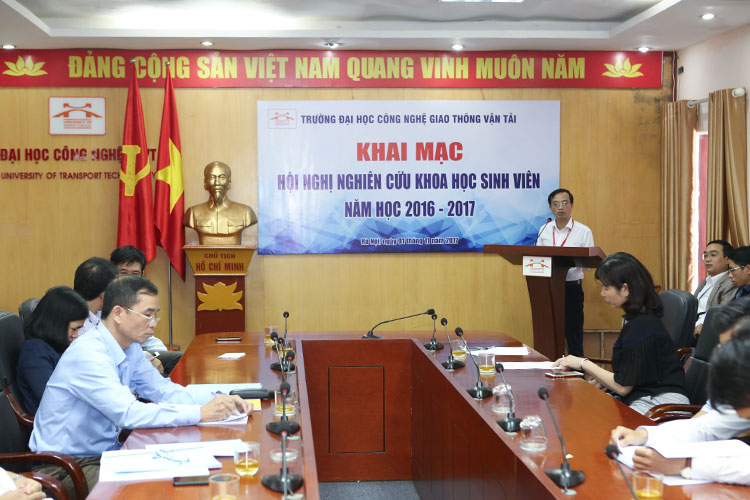 Thực hiện chương trình công tác năm học, nhằm giúp sinh viên củng cố và nâng cao kiến thức lý thuyết đã học; làm quen với các phương pháp tư duy, phương pháp nghiên cứu khoa học; có cơ hội đi sâu tìm hiểu, nghiên cứu những vấn đề cụ thể chuyên môn đặt ra, đồng thời phát huy tính làm quen, trao đổi, chia sẻ về chuyên môn trong quá trình đào tạo và nghiên cứu khoa học giữa thầy cô và sinh viên. Ngày 01/11/2017, Trường Đại học Công nghệ GTVT tổ chức Khai mạc Hội nghị nghiên cứu khoa học sinh viên năm học 2016 - 2017.
