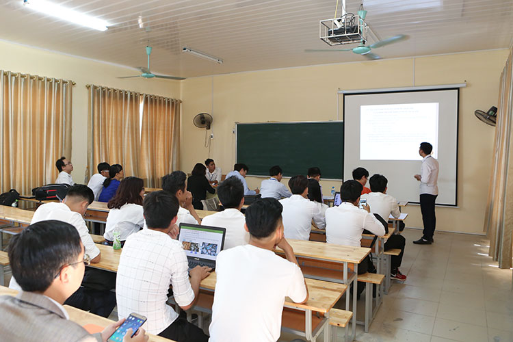 Phát biểu khai mạc hội nghị, TS. Vũ Ngọc Khiêm - Phó Hiệu trưởng Nhà trường cho biết từ năm học 2015 - 2016 có 29 đề tài nghiên cứu khoa học sinh viên đến năm học 2017 - 2018 có 51 đề tài nghiên cứu khoa học sinh viên, TS. Vũ Ngọc Khiêm đánh giá về số lượng đề tài nghiên cứu sinh viên có tăng nhưng so với tổng số sinh viên trên 12.000 sinh viên thì vẫn còn hết sức khiêm tốn. Đồng chí đề nghị lãnh đạo các Khoa cần quan tâm chỉ đạo công tác nghiên cứu khoa học trong sinh viên để đưa phong trào NCKH thực sự là một hoạt động quan trọng góp phần nâng cao chất lượng giáo dục đào tạo của Nhà trường.