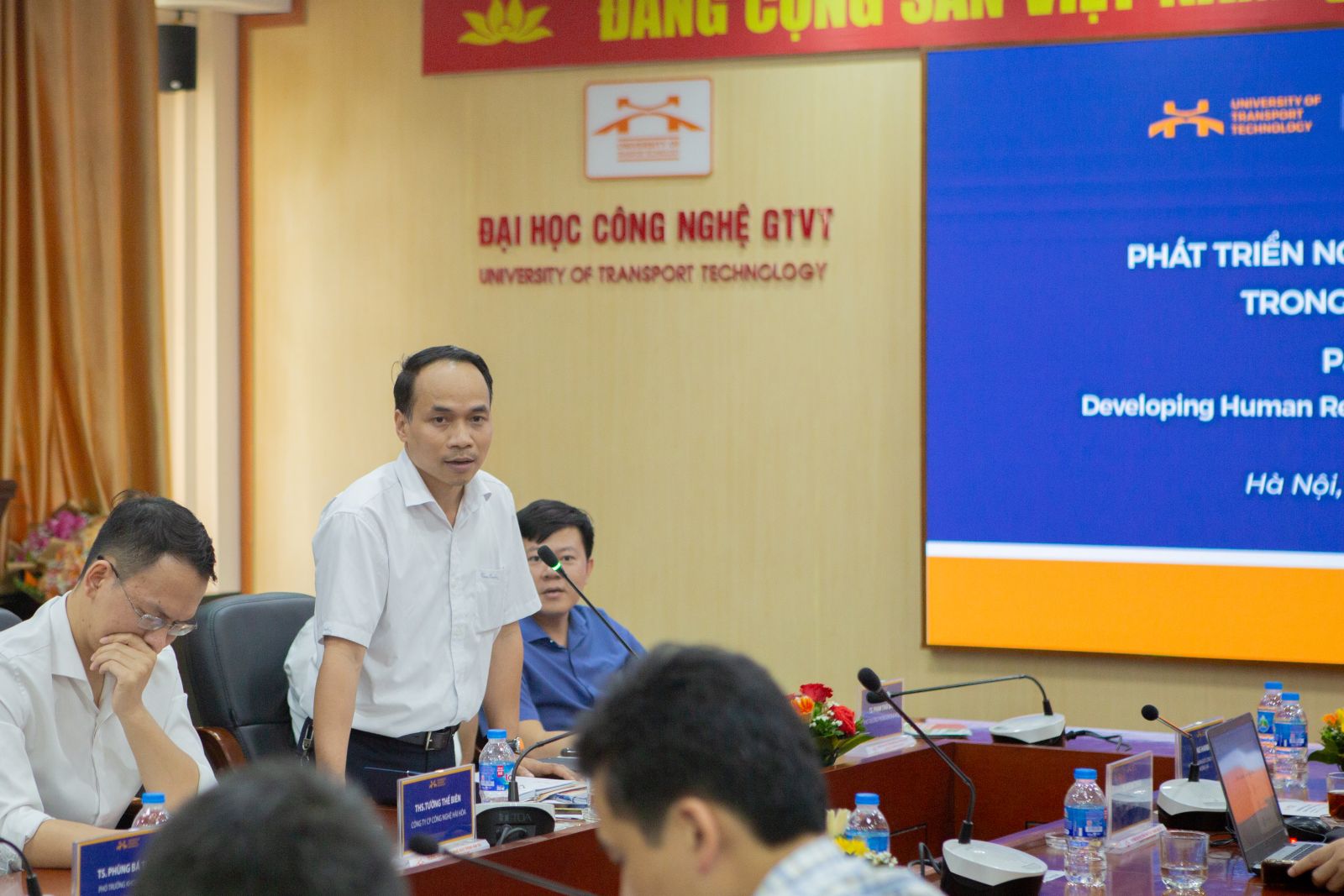 TS. Phùng Bá Thắng, Phó Trưởng khoa Công trình trình bày tham luận “Phát triển nguồn nhân lực chất lượng cao ứng dụng BIM tại Đại học Công nghệ GTVT”