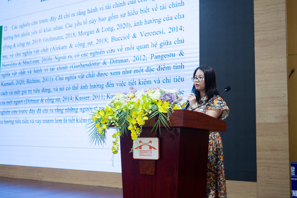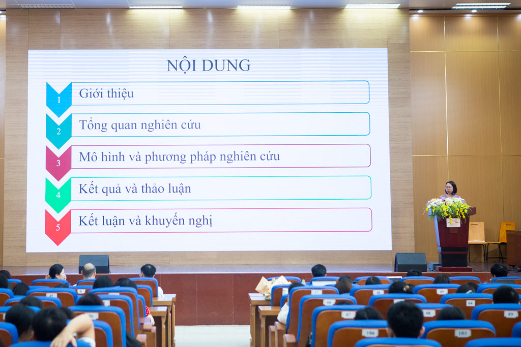 Tại Hội thảo, các đại biểu đã nghe các báo cáo viên trình bày 09 tham luận: Các nhân tố ảnh hưởng đến kiệt quệ tài chính của các doanh nghiệp xây dựng và doanh nghiệp bất động sản niêm yết trên thị trường chứng khoán Việt Nam; Ảnh hưởng của nhận thức rủi ro tới hiệu quả hoạt động của ngân hàng khi áp dụng Fintech: Tiếp cận theo mô hình thẻ điểm cân bằng; Tác động của quản lý chuỗi cung ứng xanh đến hiệu quả hoạt động của doanh nghiệp xây dựng tại Việt Nam; Các nhân tố ảnh hưởng tới tính tuân thủ thuế tại các doanh nghiệp bất động sản trên địa bàn hành phố Hà Nội; Các nhân tố ảnh hưởng đến sự hài lòng của khách hàng đối với dịch vụ chuyển tiền trực tuyến trên địa bàn Thành phố Hà Nội; Các nhân tố ảnh hưởng đến phải thu của khách hàng trong các doanh nghiệp xây dựng niêm yết; Vai trò của niềm tin trong mối quan hệ giữa ý định và hành vi tiêu dùng sản phẩm xanh: Nghiên cứu trường hợp xăng sinh học tại Việt Nam; Mối quan hệ giữa chi tiêu cho giáo dục của chính phủ, tổng thu nhập quốc dân, và thất nghiệp ở Việt Nam; Tác động của chủ nghĩa vật chất đối với hành vi tiết kiệm của sinh viên đại học tại Hà Nội Việt Nam: Vai trò của khả năng tự quản lý tài chính và tiêu dùng bốc đồng.