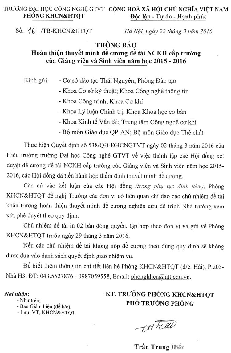 Thông báo Hoàn thiện thuyết minh đề cương đề tài NCKH cấp Trường của Giảng viên và Sinh viên năm học 2015 - 2016 08/04/2016 14:04 File đính kèm 20160408204639.pdf