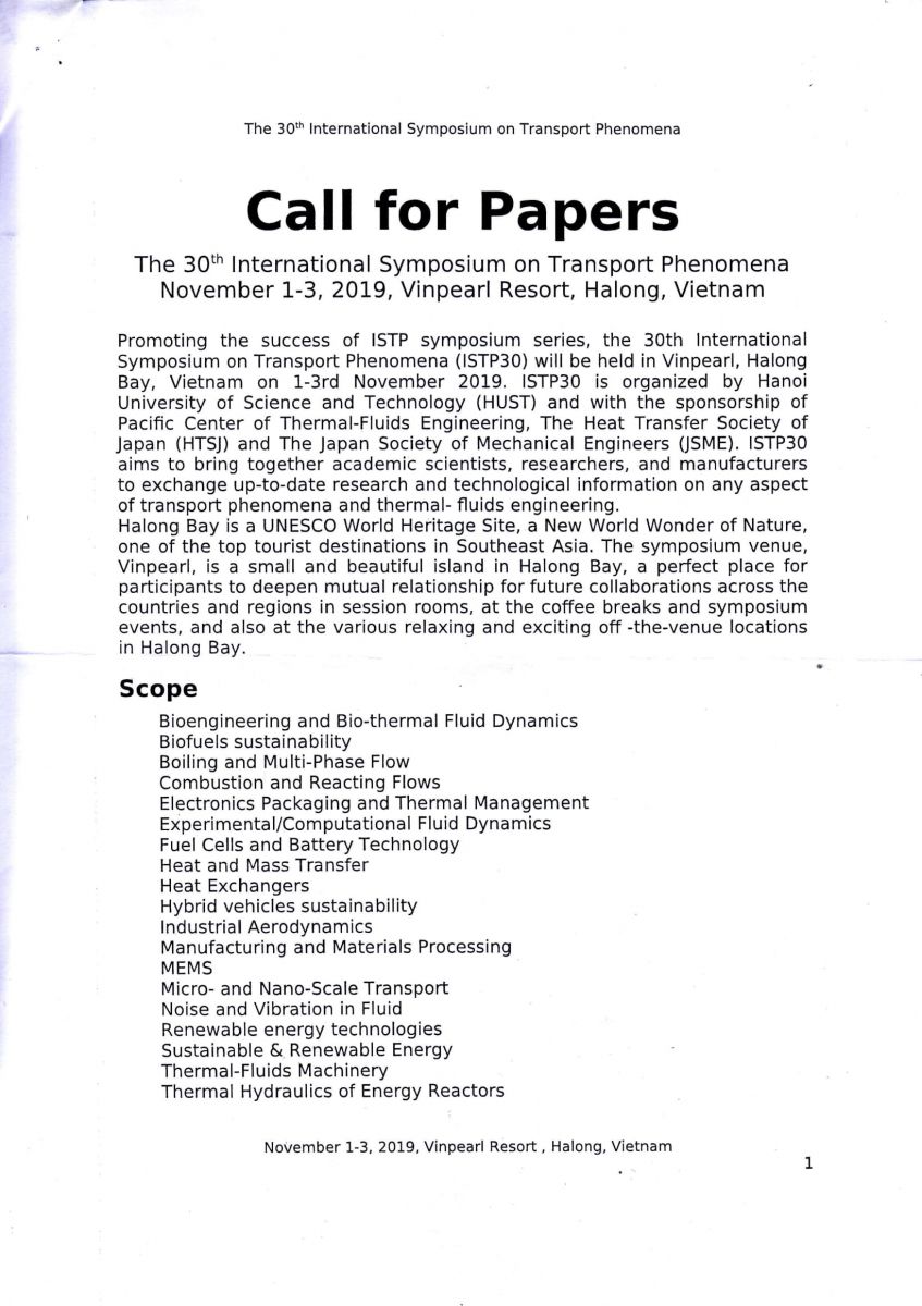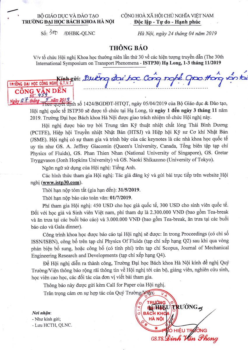 Thông báo tổ chức Hội nghị khoa học thường niên lần thứ 30 về các hiện tượng truyền dẫn 08/05/2019 16:05