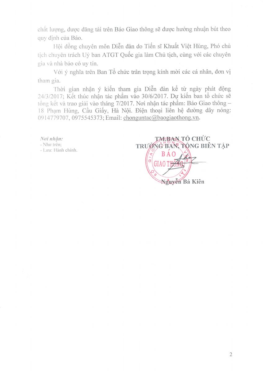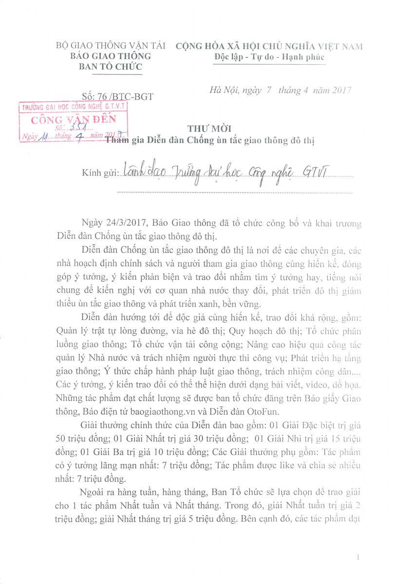 Thư mời tham gia diễn đàn Chống ùn tắc giao thông đô thị
