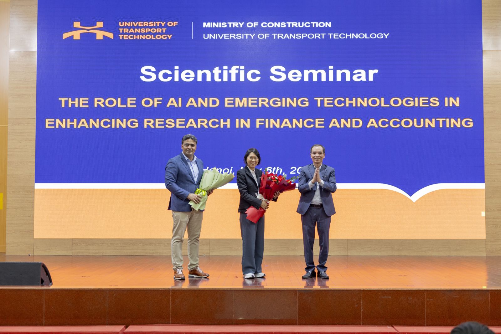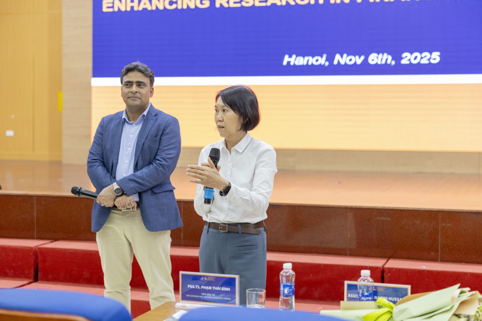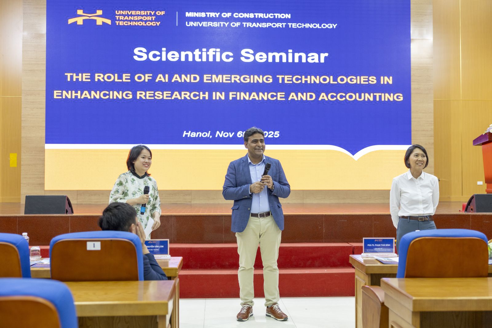 Tham dự tọa đàm có TS. Nguyễn Văn Lâm - Phó Hiệu trưởng Nhà trường; TS. Ngô Thị Thanh Hương - Trưởng Phòng KHCN&HTQT; TS. Hoàng Thị Hồng Lê - Trưởng Khoa Kinh tế vận tải; PGS.TS. Phạm Thái Bình - Tổng biên tập JSTT cùng đại diện lãnh đạo các đơn vị, giảng viên và đông đảo sinh viên, đặc biệt là sinh viên ngành Kế toán và Tài chính doanh nghiệp. Buổi tọa đàm vinh dự có sự tham dự và chia sẻ của hai diễn giả quốc tế: PGS.TS. Kanitsorn Terdpaopong đến từ Trường Đại học Rangsit (Thái Lan) và PGS.TS. Nazim Hussain đến từ Trường Đại học Groningen (Hà Lan).