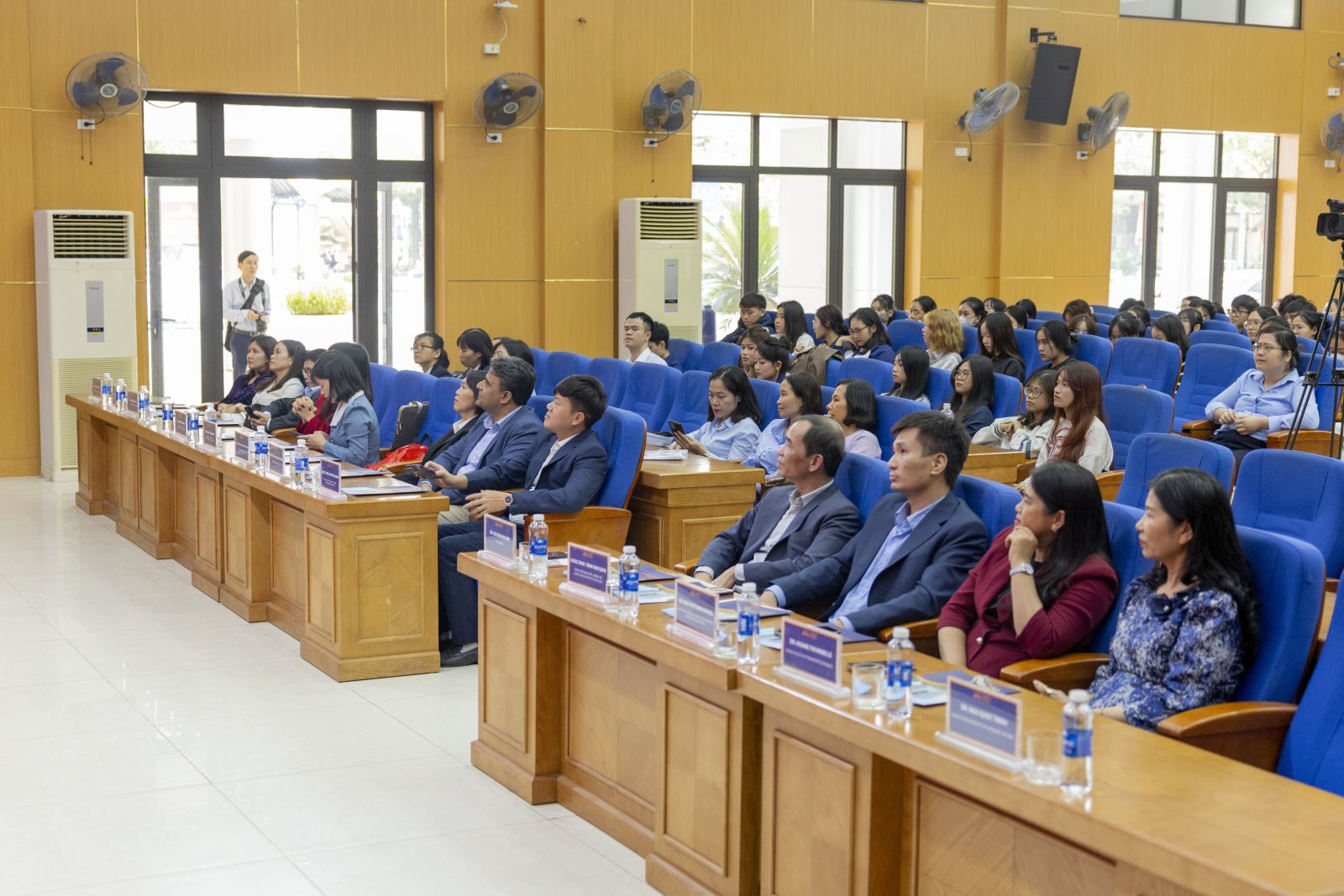 Không khí tọa đàm trở nên sôi nổi trong phần thảo luận mở. Nhiều sinh viên đặt câu hỏi về bình đẳng giới trong quản trị doanh nghiệp và những kỹ năng cần thiết để thích ứng với thời đại trí tuệ nhân tạo. Những chia sẻ chân thành, gần gũi của các diễn giả đã mang lại nguồn cảm hứng lớn cho giảng viên và sinh viên, đồng thời đặt ra yêu cầu đổi mới mạnh mẽ trong chiến lược ứng dụng AI vào nghiên cứu, giảng dạy và học tập của Nhà trường.