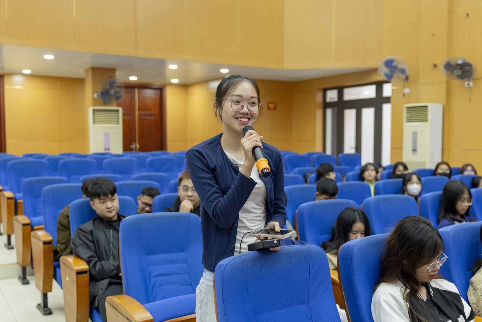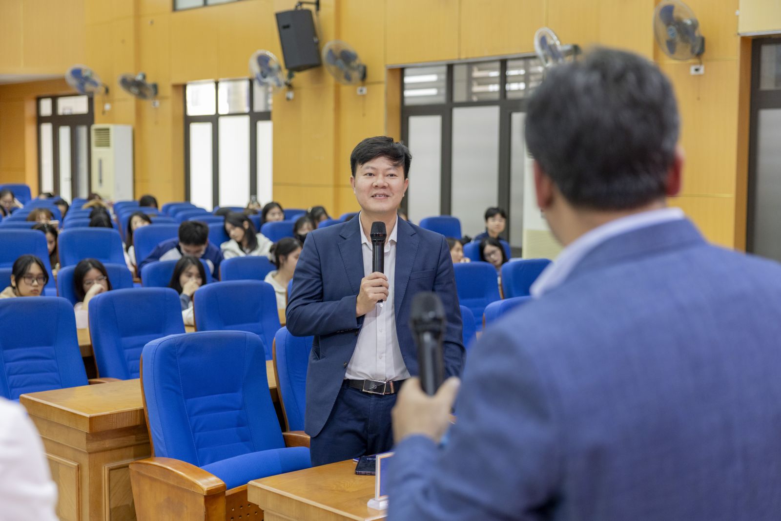 Sinh viên tham gia trao đổi, thảo luận với diễn giả tại chương trình