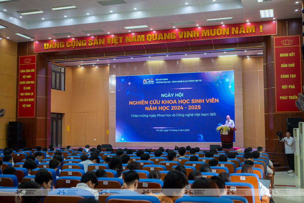 Ngày 17/5, tại Trường Đại học Công nghệ GTVT đã diễn ra Ngày hội Nghiên cứu khoa học (NCKH) sinh viên năm học 2024-2025 thu hút sự tham gia đông đảo của giảng viên và sinh viên toàn trường. Sự kiện không chỉ là dịp tổng kết, đánh giá các kết quả nổi bật trong hoạt động nghiên cứu khoa học của sinh viên năm học vừa qua, mà còn là mà còn là cú hích quan trọng nhằm khởi động, lan tỏa phong trào NCKH cho năm học mới. Đây cũng là hoạt động hướng tới kỷ niệm Ngày khoa học và công nghệ Việt Nam 18/5.