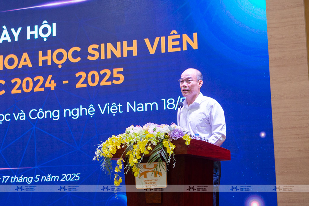 Phát biểu tại lễ khai mạc, TS. Trần Hà Thanh đánh giá cao và biểu dương tinh thần học tập, nghiên cứu sáng tạo của thầy và trò toàn trường. Trong năm học 2024-2025, sinh viên UTT đã thực hiện nhiều đề tài NCKH với nội dung phong phú, nhiều đề tài đã tham gia và đạt thành tích cao tại các sân chơi học thuật lớn như: Cuộc thi Thử thách Kỹ năng và Công nghệ Tương lai BRICS, Giải thưởng Sinh viên NCKH Euréka,... Cùng với đó là các hoạt động học thuật như tổ chức hội thảo khoa học, diễn đàn nghiên cứu, thành lập các câu lạc bộ học thuật góp phần hình thành một hệ sinh thái nghiên cứu khoa học năng động và hiệu quả trong Nhà trường.