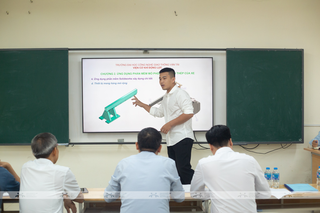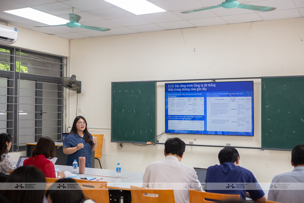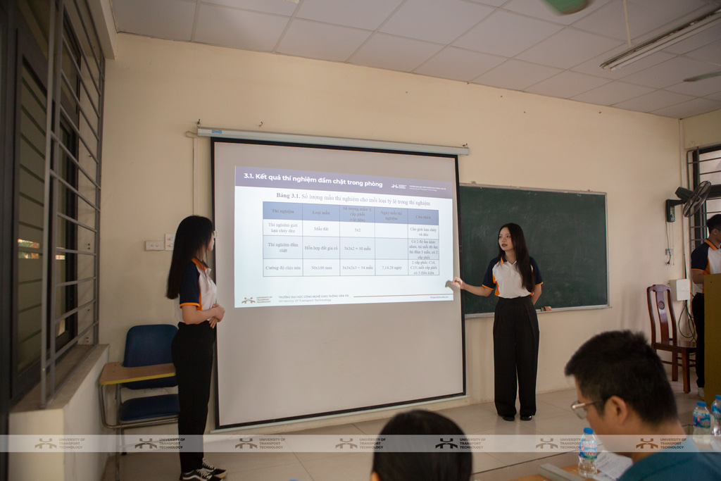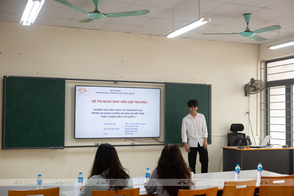 Sau phần khai mạc, chương trình tiếp tục với nội dung trọng tâm là đánh giá và nghiệm thu các đề tài nghiên cứu khoa học cấp trường. Năm nay, 150 đề tài tiêu biểu được lựa chọn từ nhiều lĩnh vực như: Kỹ thuật xây dựng, Cơ khí, Công nghệ thông tin, Kinh tế vận tải, Logistics, Luật - Chính trị... bước vào phần phản biện. Mỗi nhóm sinh viên có 20 phút để trình bày kết quả nghiên cứu và trực tiếp phản biện trước Hội đồng chuyên môn.