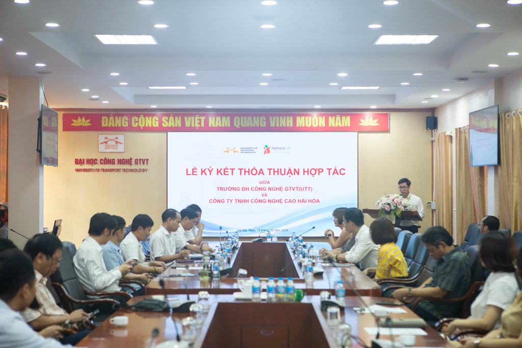 Ngày 18/10, tại Phân Hiệu Hà Nội đã diễn ra Lễ ký kết thỏa thuận hợp tác giữa Trường Đại học Công nghệ GTVT với Công ty TNHH Công nghệ cao Hài Hòa (Harmony AT).