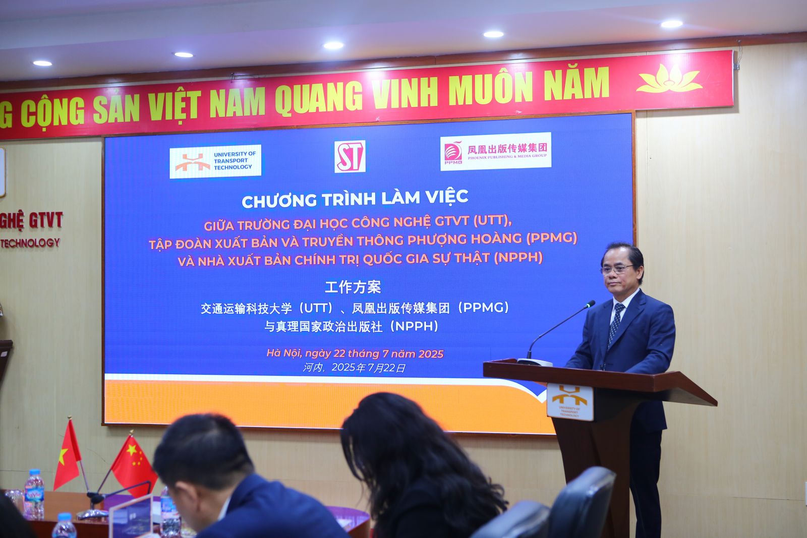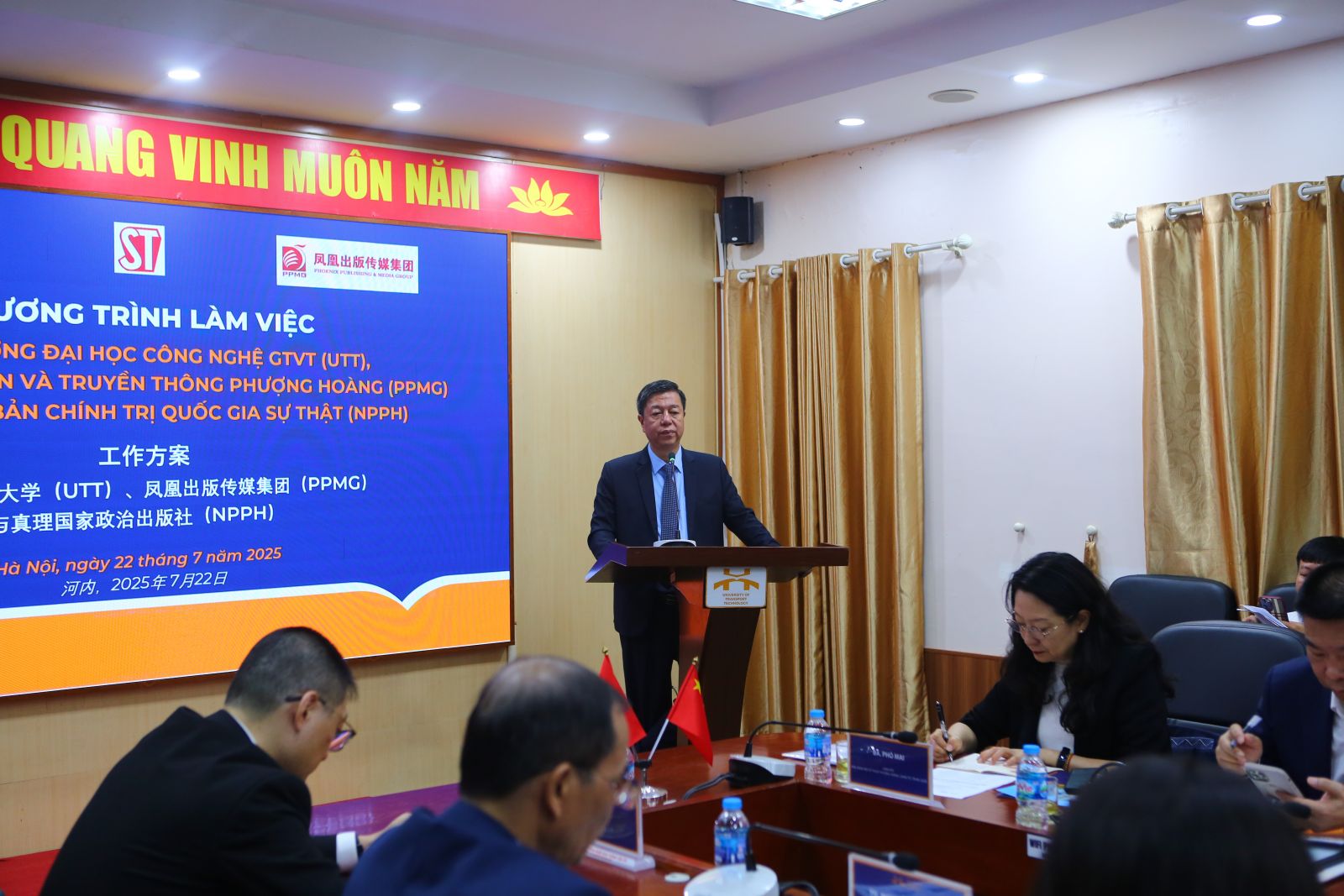Ngày 22/7, Trường Đại học Công nghệ GTVT đã có buổi làm việc và trao đổi hợp tác với Tập đoàn Xuất bản và Truyền thông Phượng Hoàng (Giang Tô, Trung Quốc) và Nhà Xuất bản Chính trị Quốc gia Sự thật. Sự kiện nhằm mở rộng hợp tác trong các lĩnh vực xuất bản học thuật, truyền thông giáo dục, phát triển nội dung số và quốc tế hóa các hoạt động đào tạo, nghiên cứu.