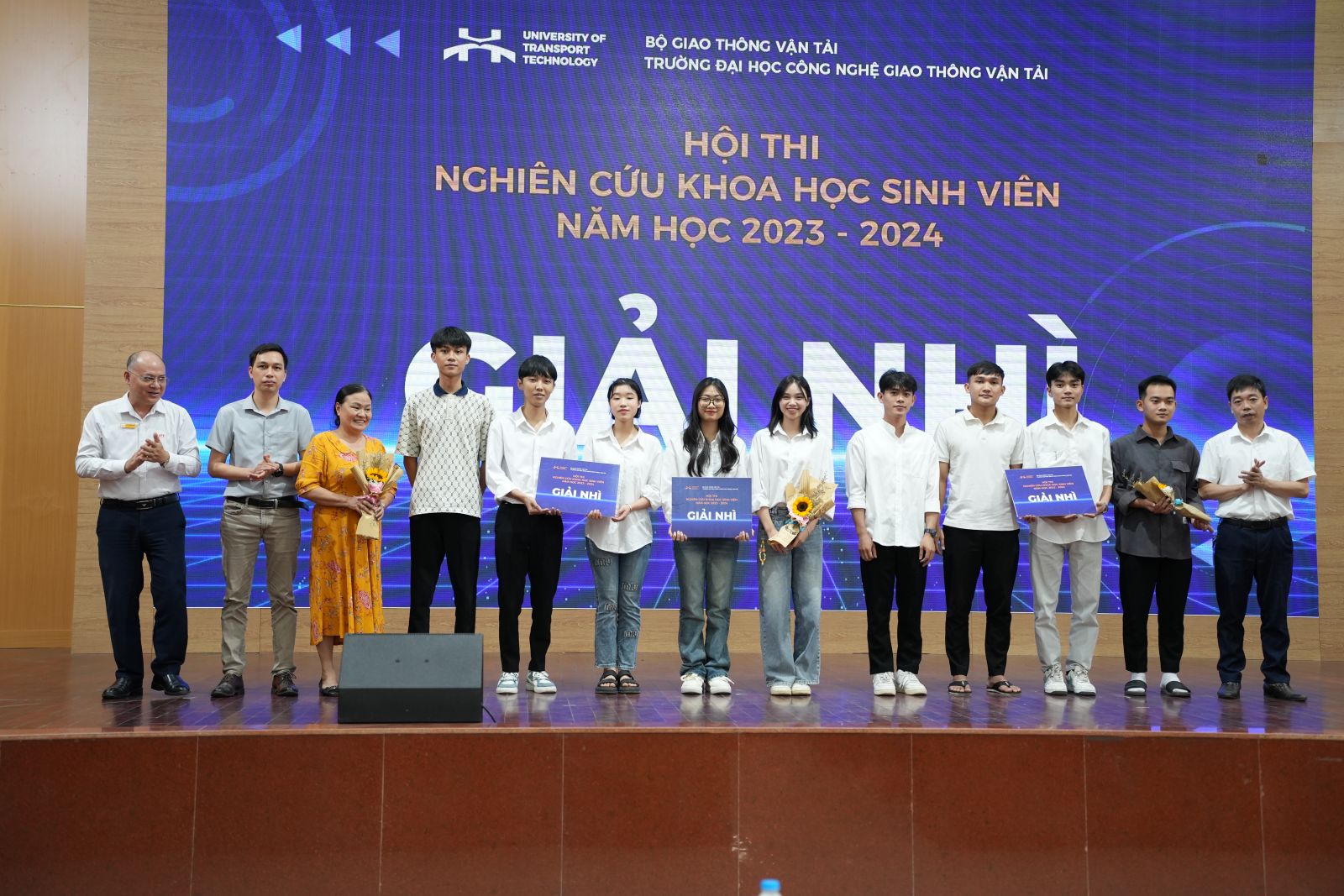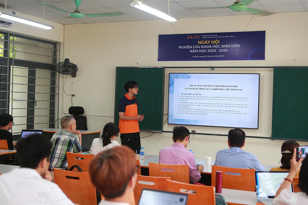 Sáng ngày 29/6, Trường Đại học Công nghệ GTVT đã tổ chức Ngày hội Nghiên cứu khoa học (NCKH) sinh viên năm học 2023-2024 nhằm tổng kết, đánh giá công tác tổ chức và biểu dương thành tích NCKH của sinh viên trong năm học 2023-2024, từ đó khơi nguồn đam mê nghiên cứu hoa học cho sinh viên.
