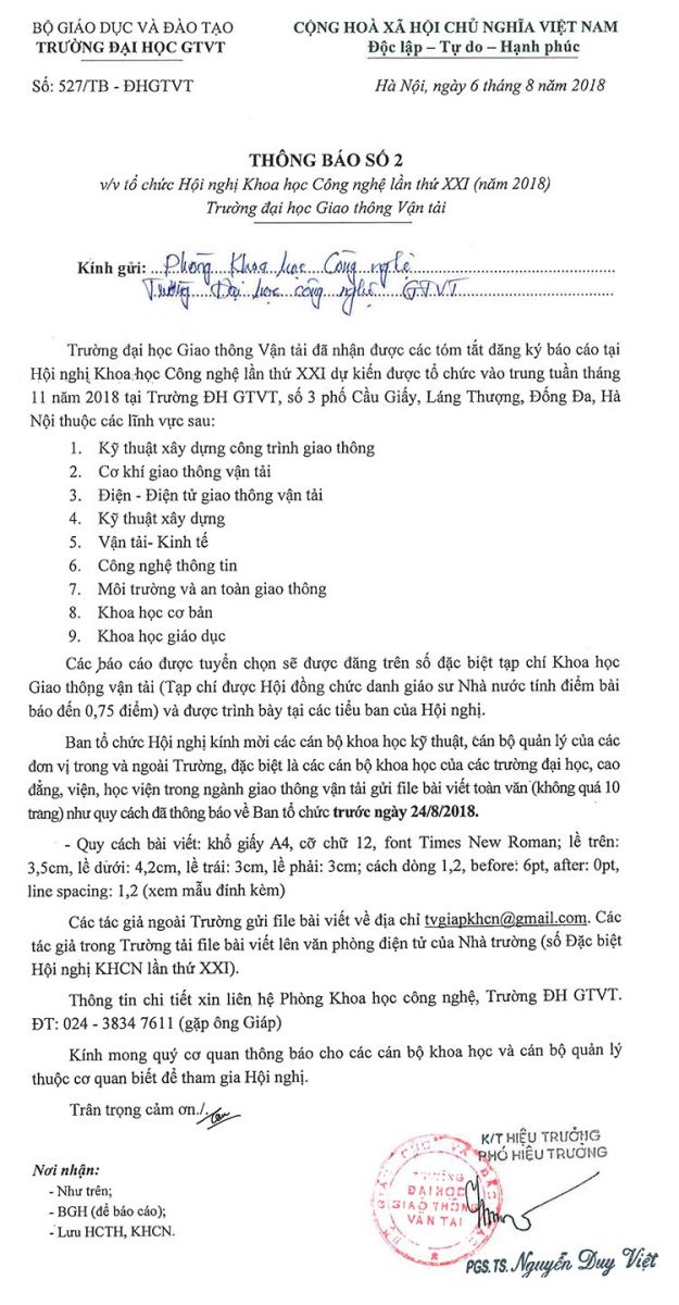 Thông báo số 2 về việc tổ chức Hội nghị Khoa học Công nghệ lần thứ XXI (năm 2018) 14/08/2018 10:08 File đính kèm 20180814121933.pdf