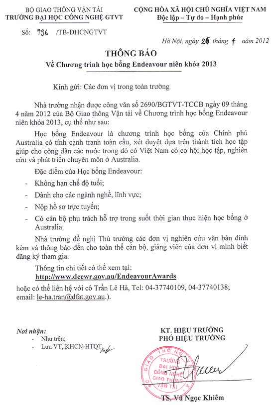 Thông báo về chương trình học bổng Endeavour niên khóa 2013
