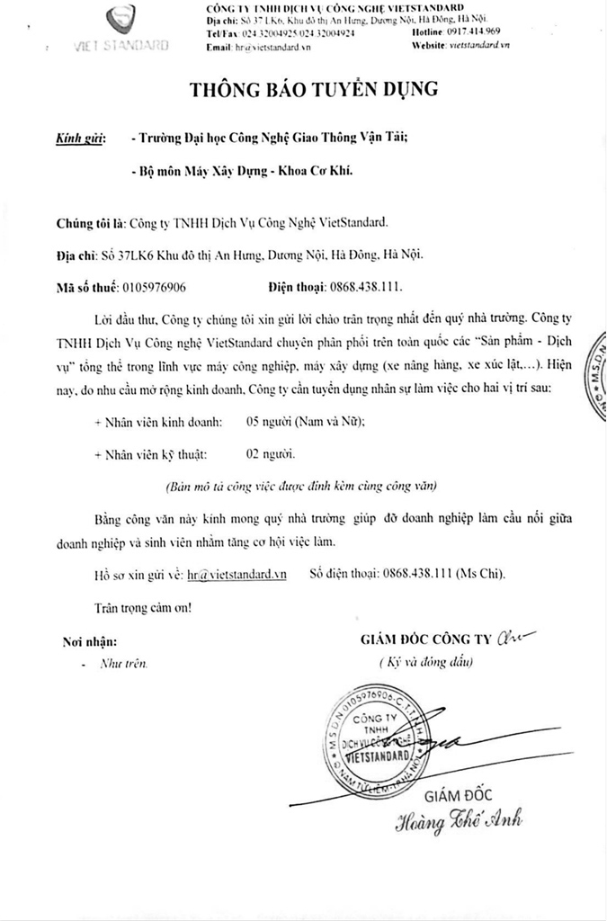 Công ty TNHH Dịch vụ Công nghệ VietStandard tuyển dụng 17/01/2024 10:01 File đính kèm thong-bao-tuyen-dung.pdf