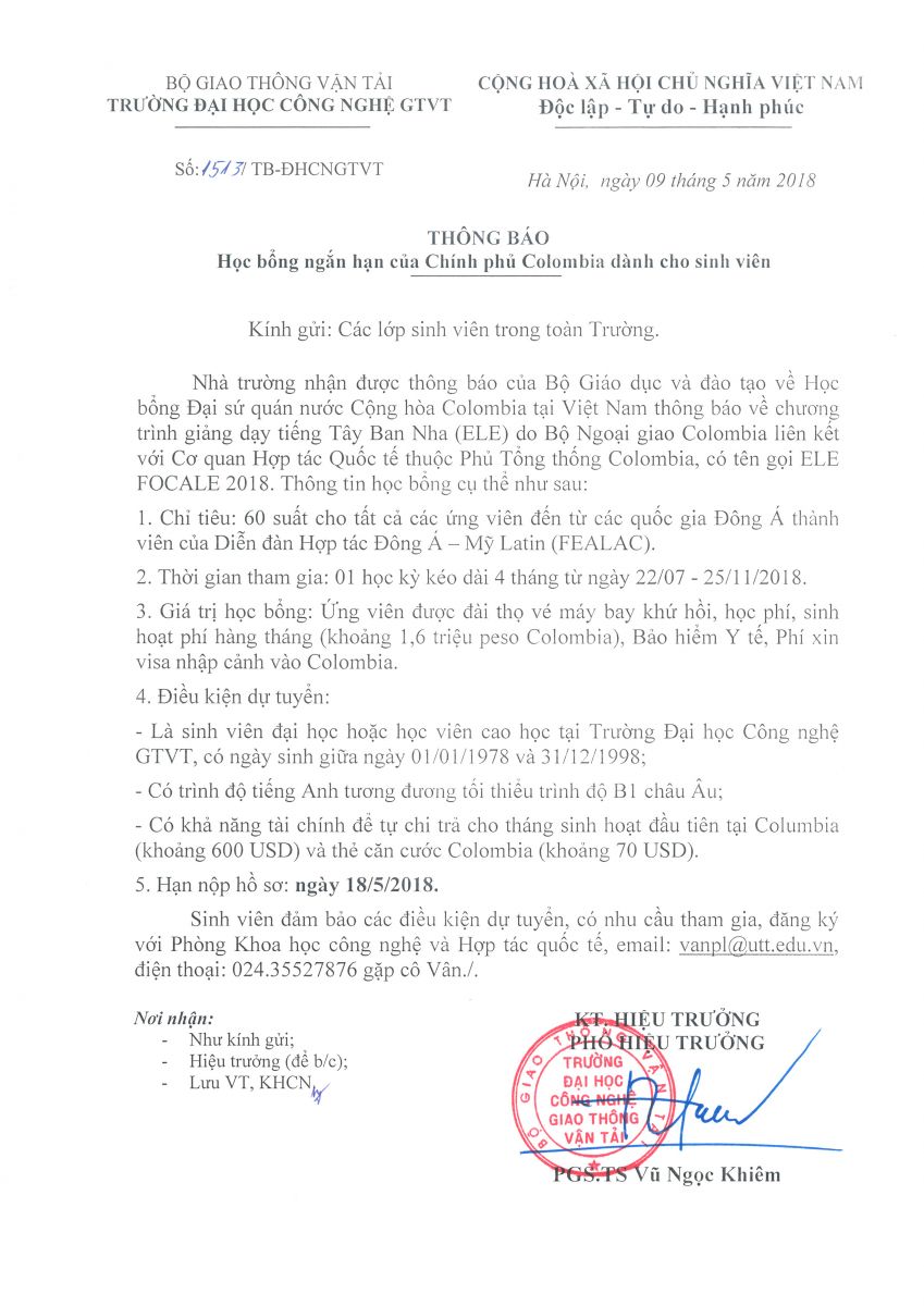 Học bổng ngắn hạn của Chính phủ Colombia dành cho học viên, sinh viên