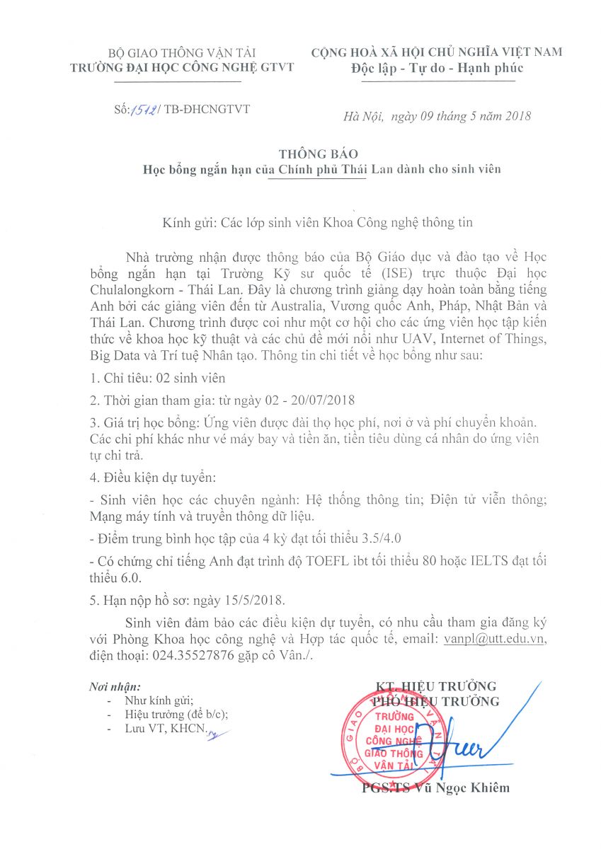 Học bổng ngắn hạn của Chính phủ Thái Lan dành cho sinh viên