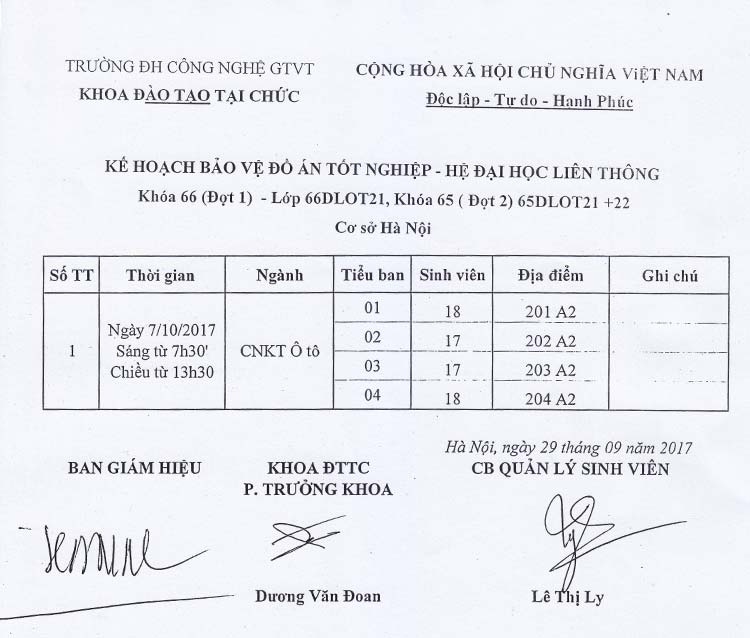 Kế hoạch bảo vệ đồ án tốt nghiệp Hệ đại học liên thông - Khoá 66 (đợt 1) 04/10/2017 10:10 Kế hoạch bảo vệ đồ án tốt nghiệp Hệ đại học liên thông - Khoá 66 (đợt 1)