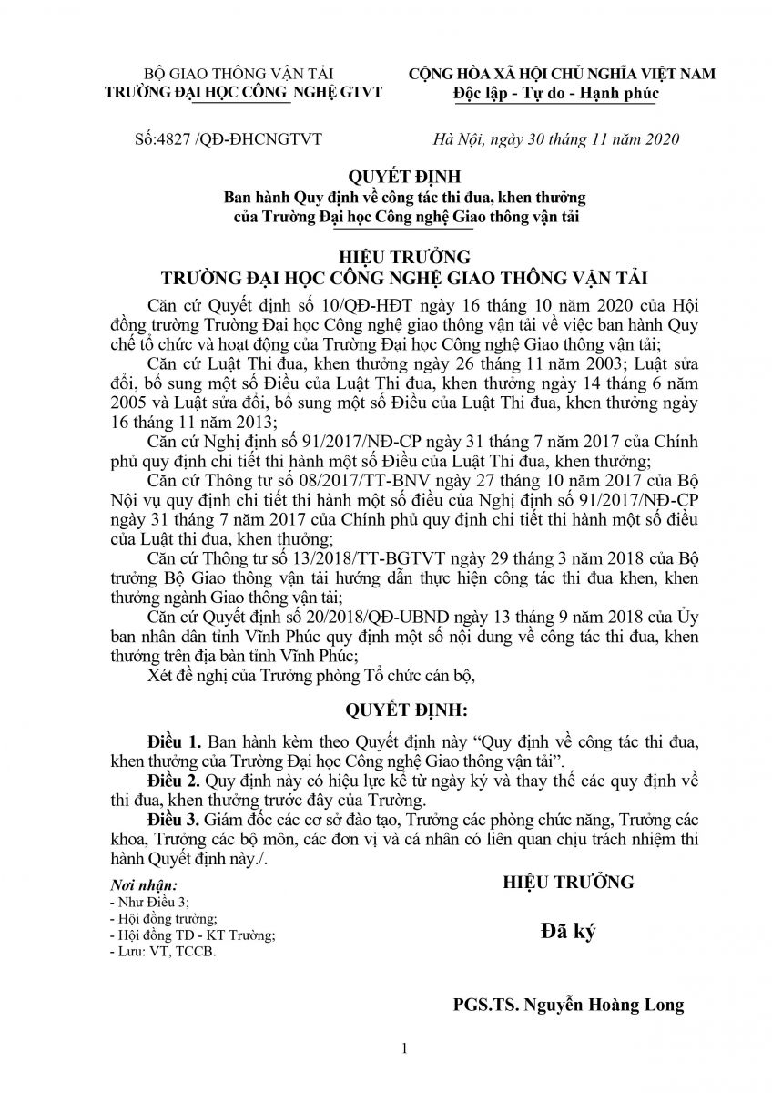 Quy định về công tác thi đua, khen thưởng của Trường Đại học Công nghệ Giao thông vận tải 06/12/2021 14:12 File đính kèm QD-4827-Quy-dinh-ve-TD-KT.pdf