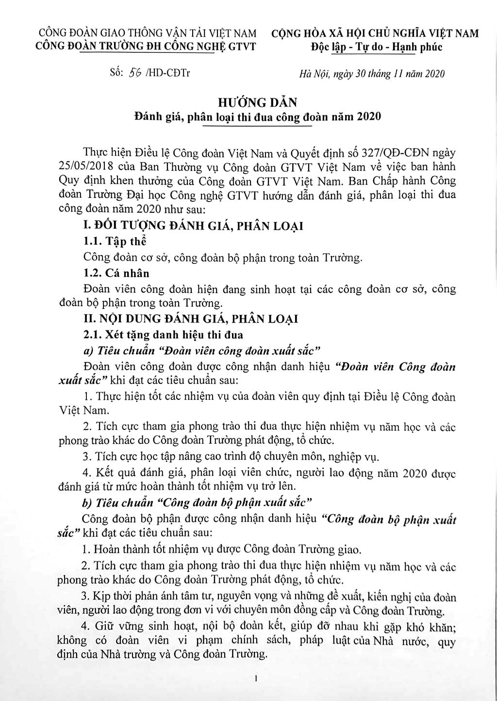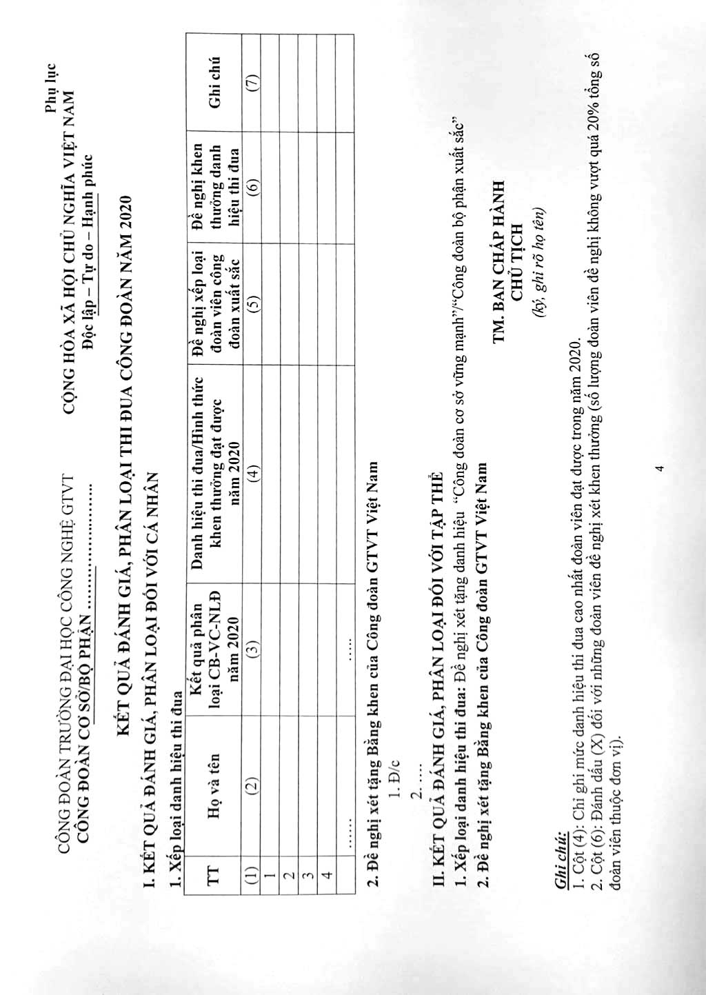 Hướng dẫn đánh giá, phân loại thi đua công đoàn năm 2020
