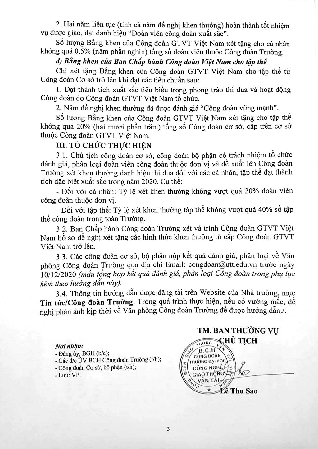 Về việc lấy ý kiến góp ý vào dự thảo Quyết định ban hành Quy định về công tác thi đua, khen thưởng của Trường Đại học Công nghệ GTVT