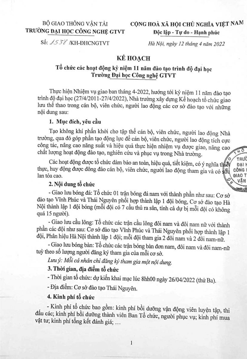 Kế hoạch Tổ chức các hoạt động kỷ niệm 11 năm đào tạo trình độ đại học