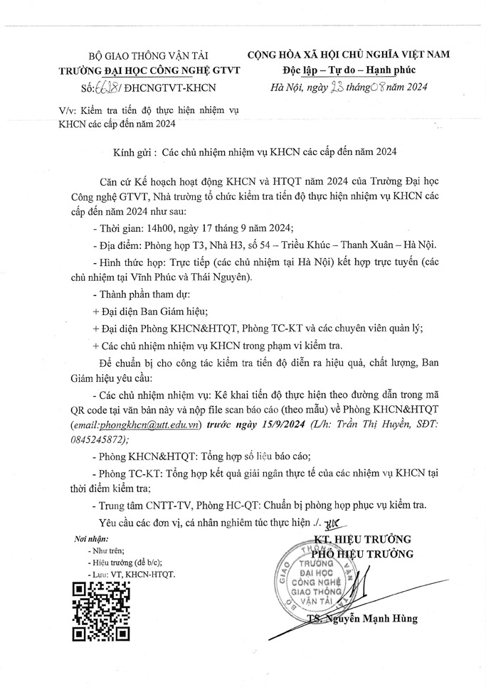 Kiếm tra tiến độ thực hiện nhiệm vụ KHCN các cấp đến năm 2024