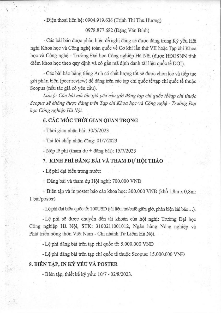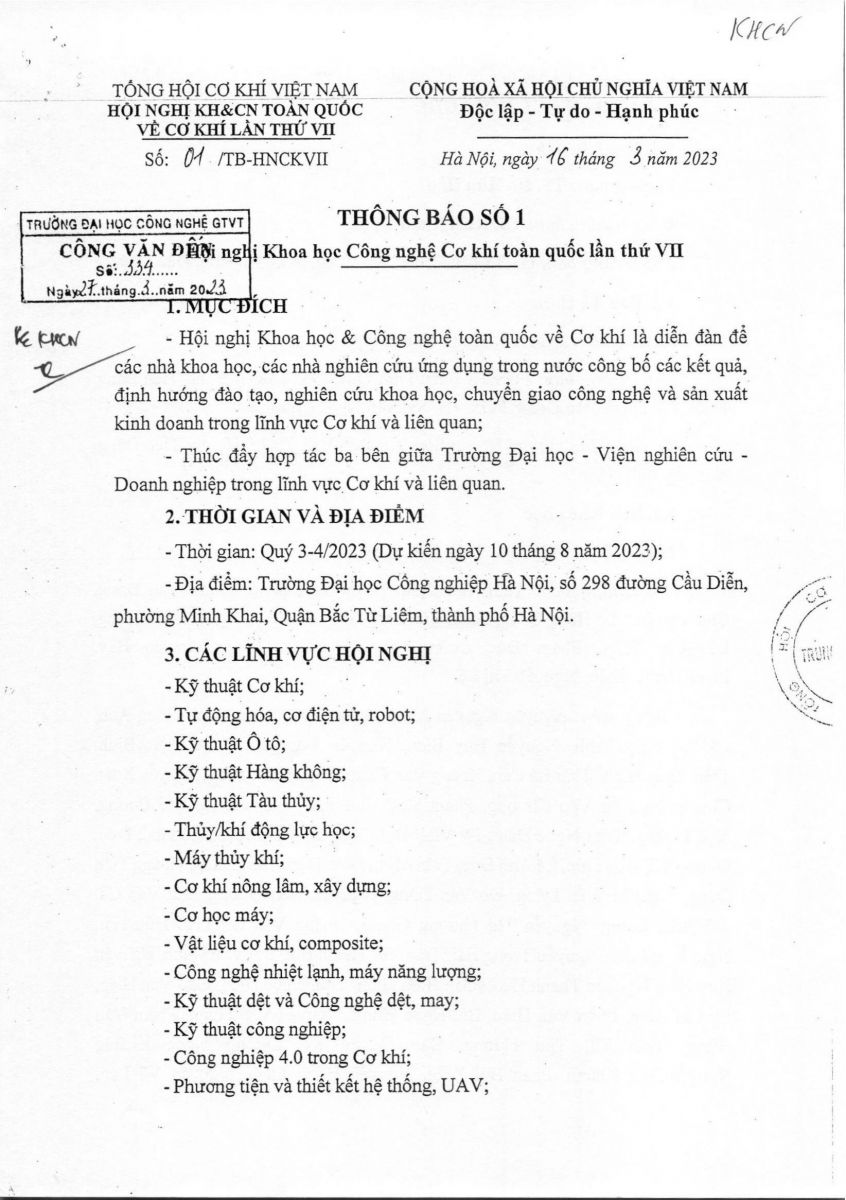 Thông báo về Hội nghị Khoa học Công nghệ Cơ khí toàn quốc lần thứ VII