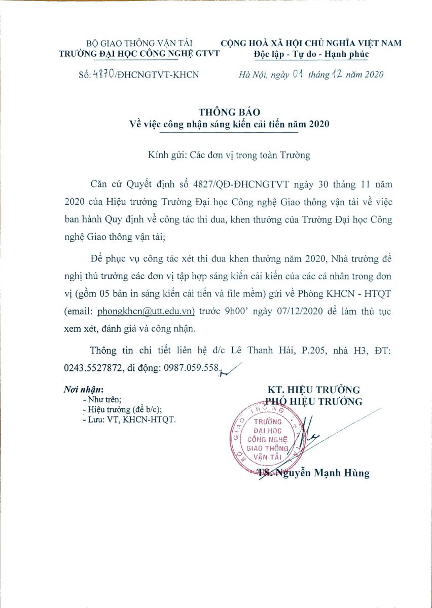 Thông báo về việc công nhận sáng kiến cải tiến năm 2020 03/12/2020 01:12 File đính kèm Don-de-nghi-cong-nhan-SKCT.doc