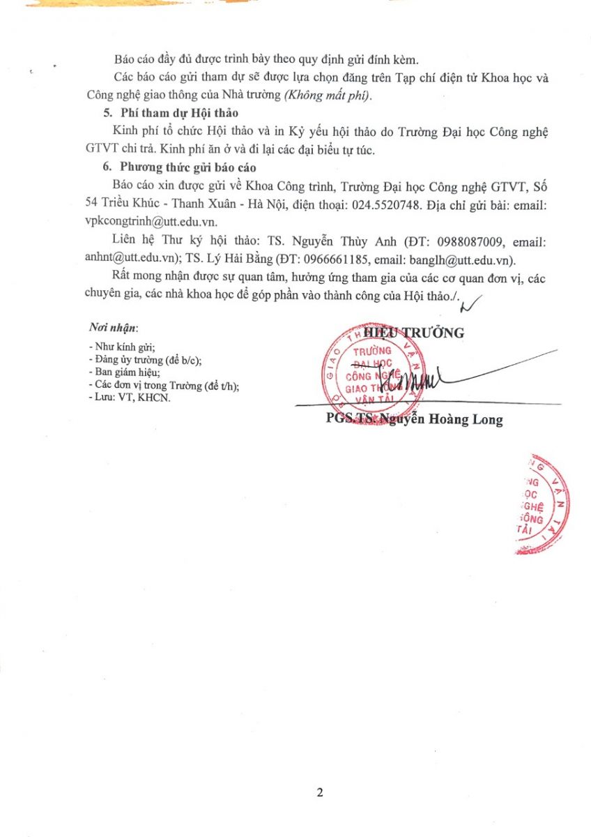 Ban tổ chức Hội thảo trân trọng kính mời các nhà khoa học, các giảng viên, nghiên cứu sinh, học viên cao học, sinh viên, cán bộ của các cơ quan thuộc lĩnh vực xây dựng công trình đăng ký tham dự và gửi bài tham dự Hội thảo.