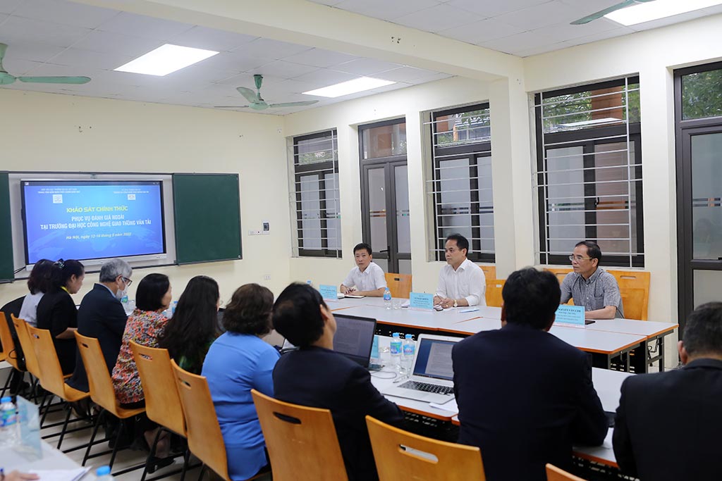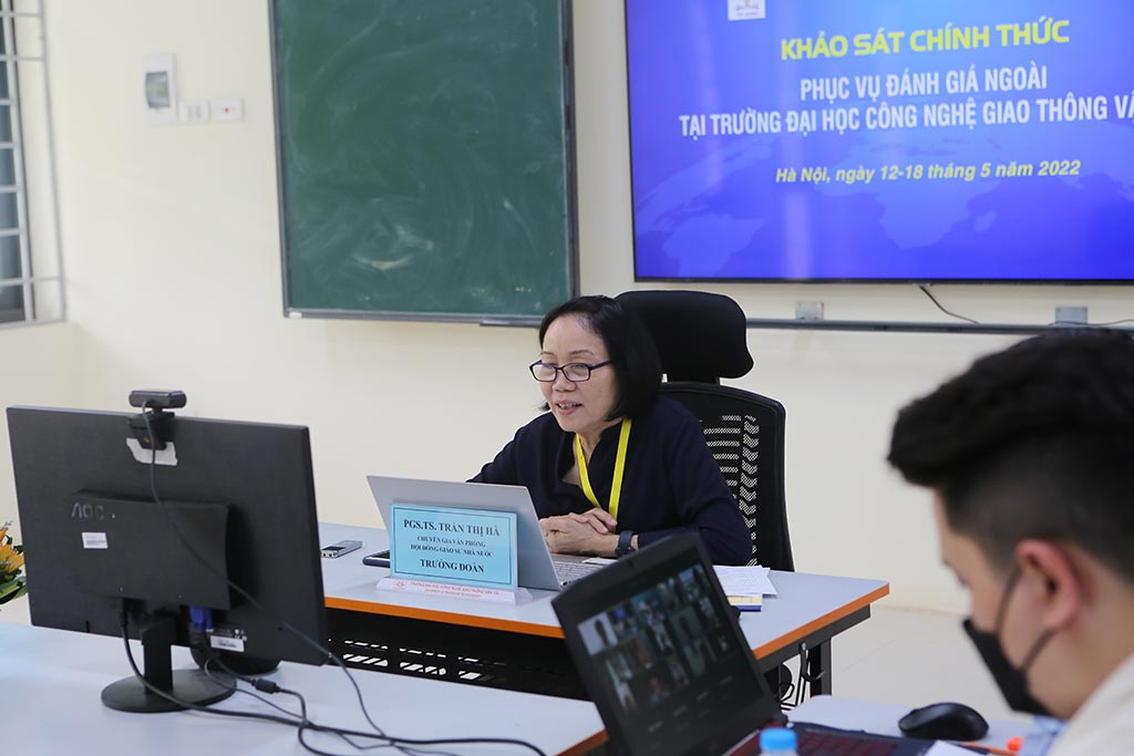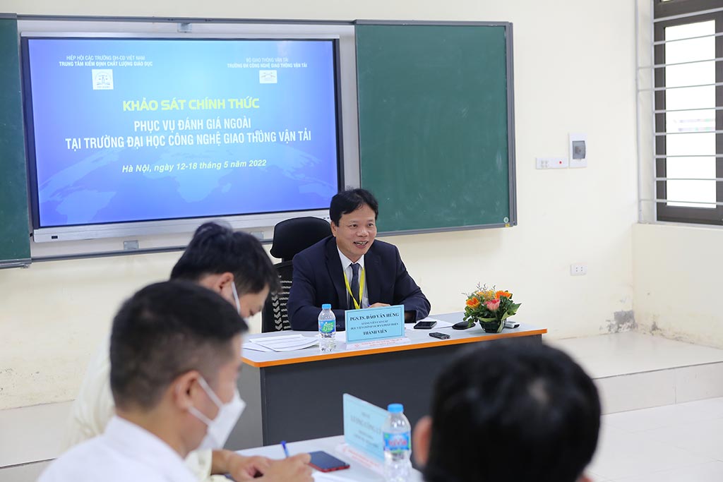Đợt khảo sát chính thức phục vụ đánh giá ngoài Trường Đại học công nghệ GTVT được tiến hành từ ngày 12/5. Trong quá trình làm việc Đoàn chuyên gia đánh giá ngoài đã tiến hành khảo sát, nghiên cứu các hồ sơ minh chứng, phỏng vấn các nhà tuyển dụng; cựu người học; người học; Lãnh đạo Nhà trường; Lãnh đạo các tổ chức đoàn thể, khoa, bộ môn, trung tâm, các phòng ban chức năng, đại diện giảng viên; thu thập thông tin phản hồi của các bên liên quan; quan sát cơ sở vật chất, phòng thí nghiệm, phòng thực hành và các phòng làm việc của Trường Đại học Công nghệ GTVT để xác thực các thông tin trong báo cáo TĐG cơ sở giáo dục của Nhà trường, từ đó đưa ra các khuyến nghị giúp cải tiến và nâng cao chất lượng của Nhà trường.