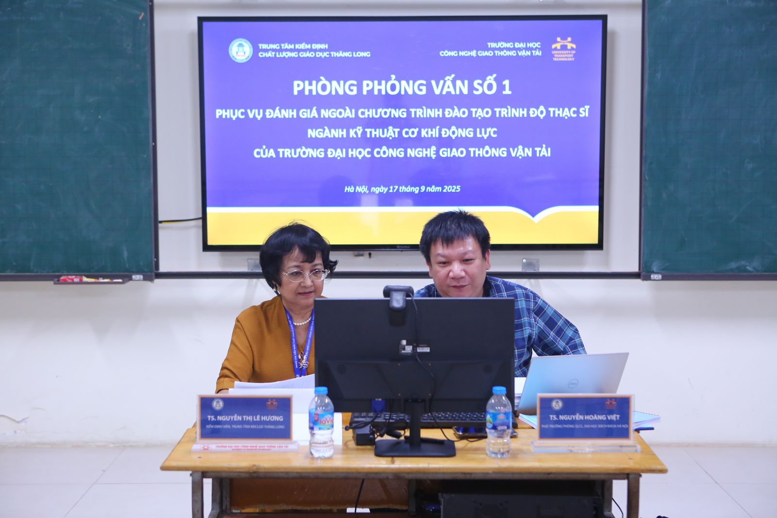 Đợt khảo sát chính thức phục vụ đánh giá ngoài 05 CTĐT trình độ thạc sĩ tại Trường Đại học Công nghệ GTVT diễn ra từ ngày 16 đến 20/9/2025. Trong thời gian này, Đoàn chuyên gia ĐGN đã nghiên cứu báo cáo TĐG, hồ sơ minh chứng; phỏng vấn cán bộ quản lý, giảng viên, học viên, cựu học viên và nhà tuyển dụng; làm việc với lãnh đạo, nhân viên các đơn vị chức năng, đoàn thể; đồng thời quan sát thực tế tại phòng làm việc, phòng học, phòng thí nghiệm, thực hành và máy tính... Các hoạt động trên nhằm xác thực thông tin trong báo cáo TĐG và đưa ra khuyến nghị giúp nhà trường cải tiến, nâng cao chất lượng đào tạo.