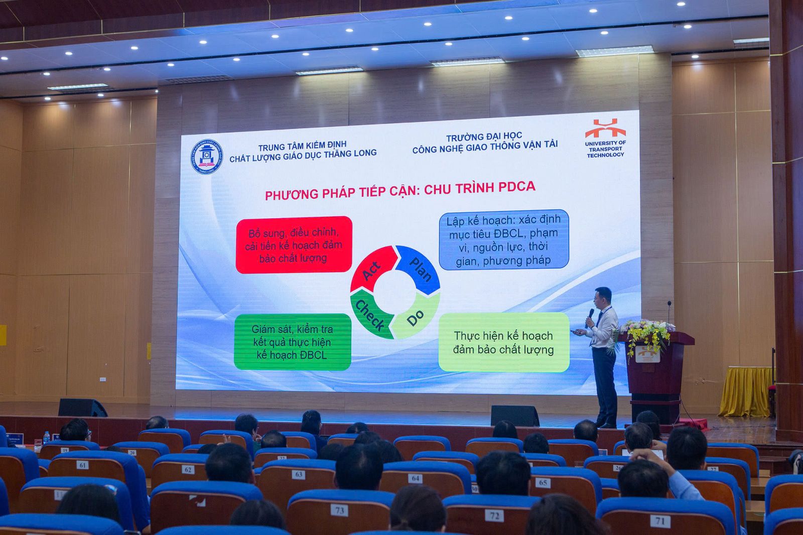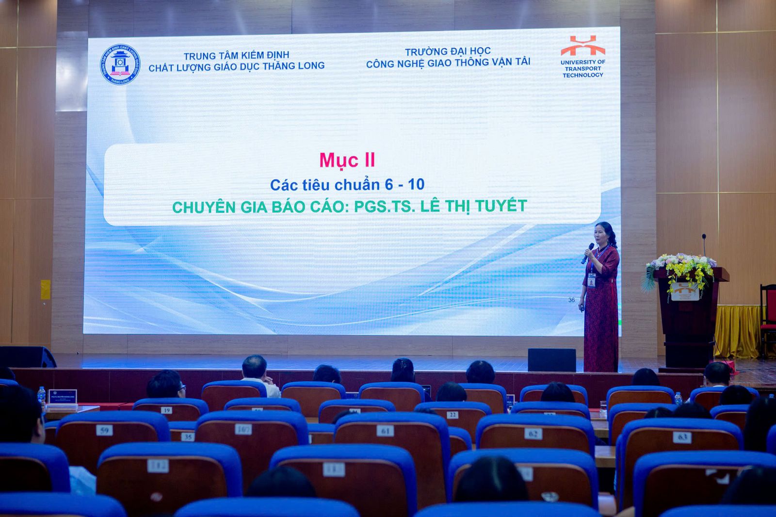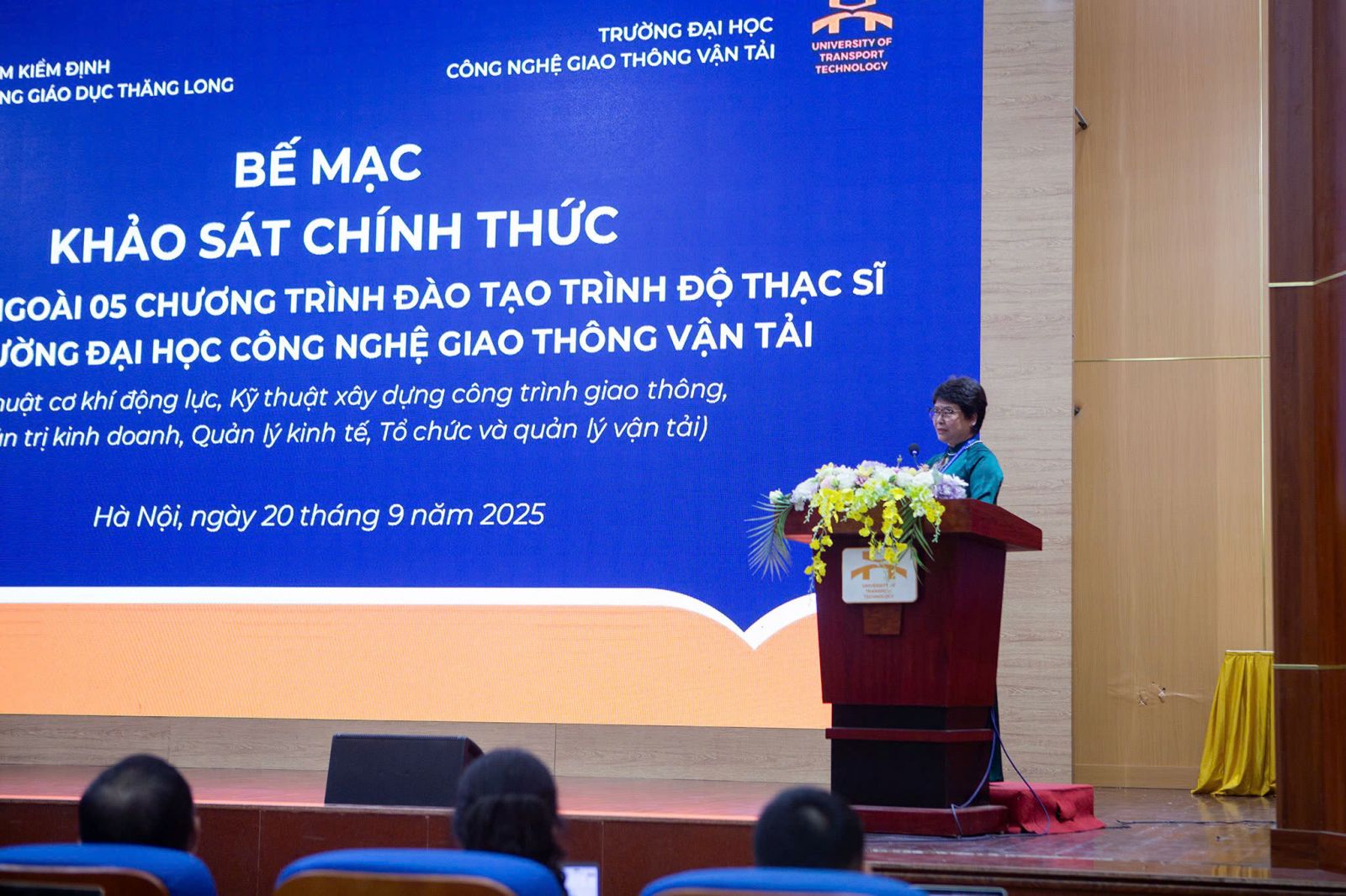 Phát biểu tại buổi bế mạc, TS. Phí Thị Nguyệt Thanh - Phó Giám đốc Trung tâm Kiểm định chất lượng giáo dục Thăng Long trân trọng ghi nhận sự phối hợp chặt chẽ của Trường Đại học Công nghệ GTVT trong việc cung cấp thông tin, minh chứng phục vụ công tác đánh giá. Đồng thời, Đoàn cũng đánh giá cao các quy trình được triển khai, phương pháp làm việc khoa học cùng tinh thần trách nhiệm, khách quan và công tâm của tập thể trong suốt quá trình nghiên cứu hồ sơ, khảo sát sơ bộ cũng như khảo sát chính thức, qua đó đưa ra những nhận định xác đáng và các khuyến nghị thiết thực nhằm nâng cao chất lượng của Nhà trường.