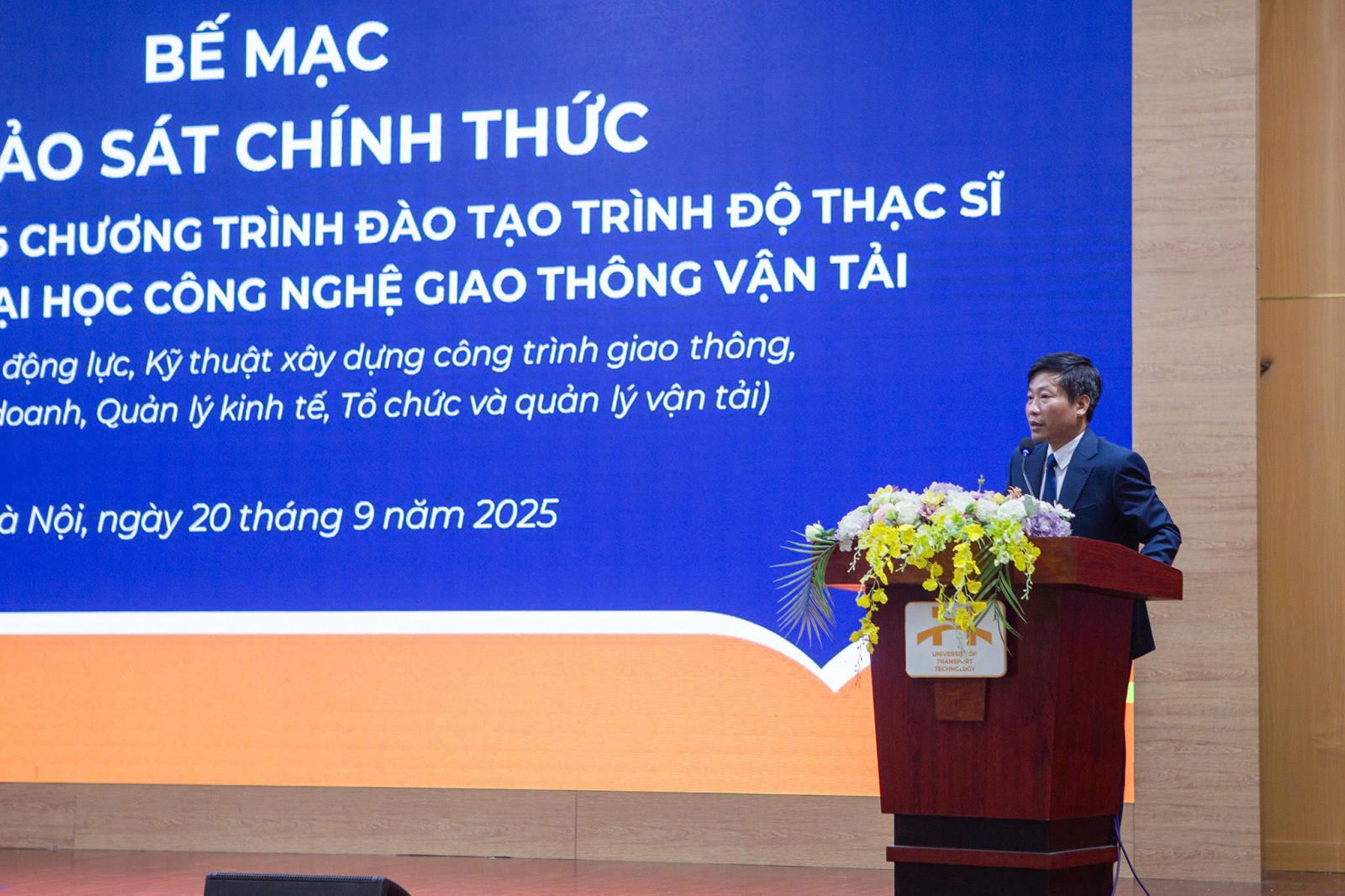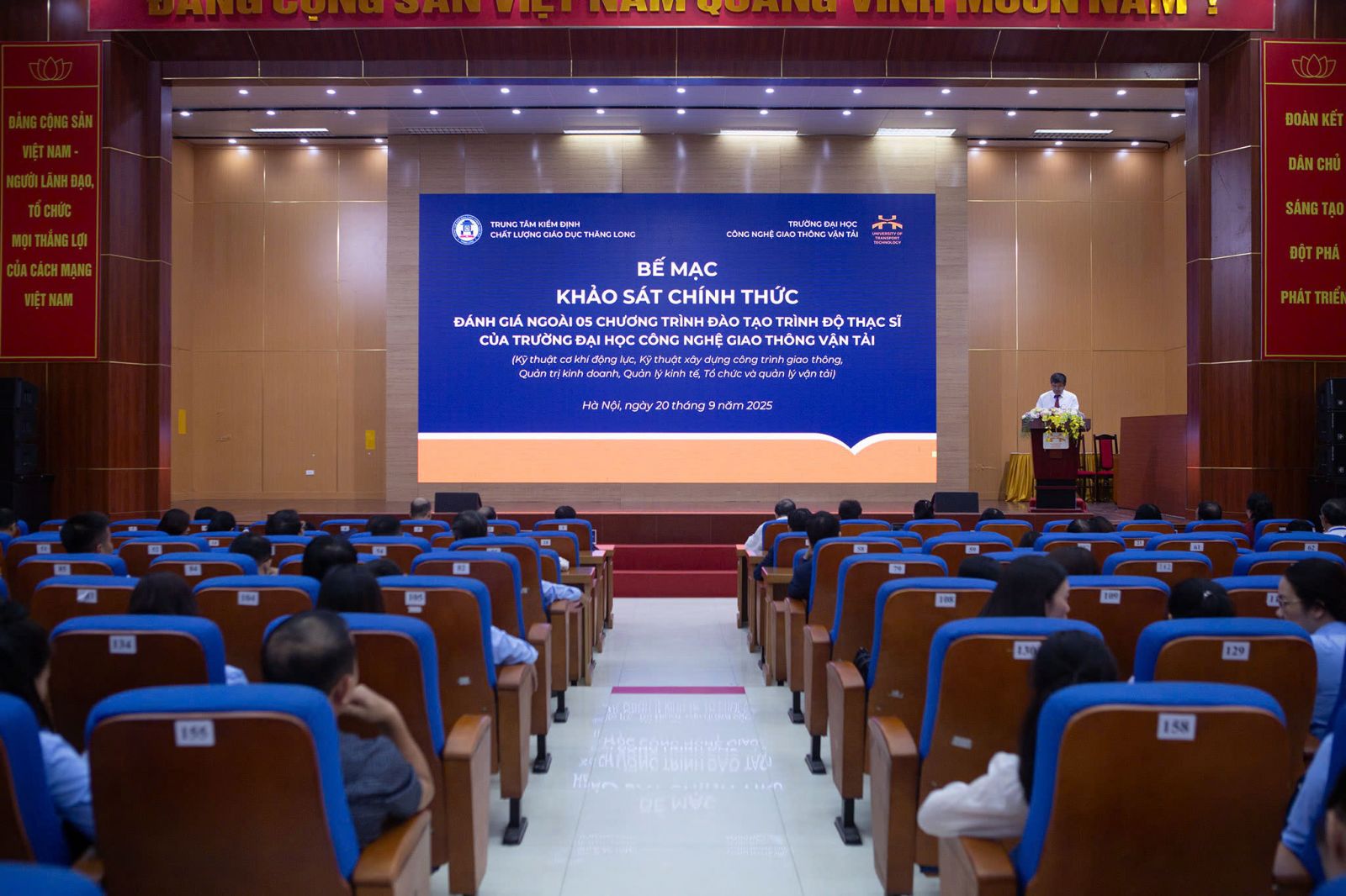Sau 5 ngày làm việc nghiêm túc, khẩn trương và đầy trách nhiệm, với sự tham gia tích cực của Đoàn chuyên gia đánh giá ngoài cùng tập thể cán bộ, giảng viên và người học, ngày 20/9/2025, Trường Đại học Công nghệ GTVT đã phối hợp với Trung tâm Kiểm định chất lượng giáo dục Thăng Long tổ chức bế mạc đợt khảo sát chính thức phục vụ đánh giá ngoài đối với 05 chương trình đào tạo thạc sĩ: Kỹ thuật cơ khí động lực, Kỹ thuật xây dựng công trình giao thông, Quản trị kinh doanh, Quản lý kinh tế và Tổ chức - quản lý vận tải.