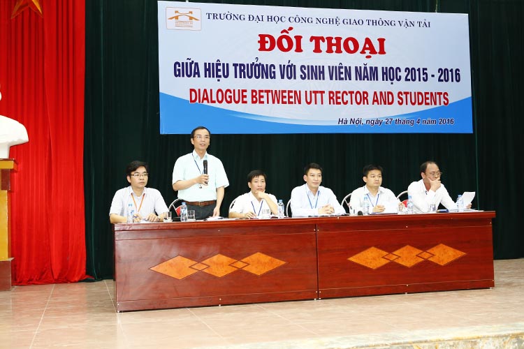 Ngày 27, 28 và 29/4/2015, được sự cho phép của Đảng ủy, Ban Giám hiệu Nhà trường, Phòng Công tác học sinh, sinh viên đã tổ chức Chương trình đối thoại giữa Hiệu trưởng với sinh viên Trường Đại học Công nghệ GTVT năm học 2015 – 2016 tại 3 cơ sở đào tạo Vĩnh Phúc, Hà Nội và Thái Nguyên. Đây là hoạt động được Nhà trường tổ chức nhằm xây dựng một môi trường dạy và học dân chủ, quan tâm đến quyền lợi của người học đồng thời thiết lập kênh thông tin đa chiều giữa Nhà trường và sinh viên.
