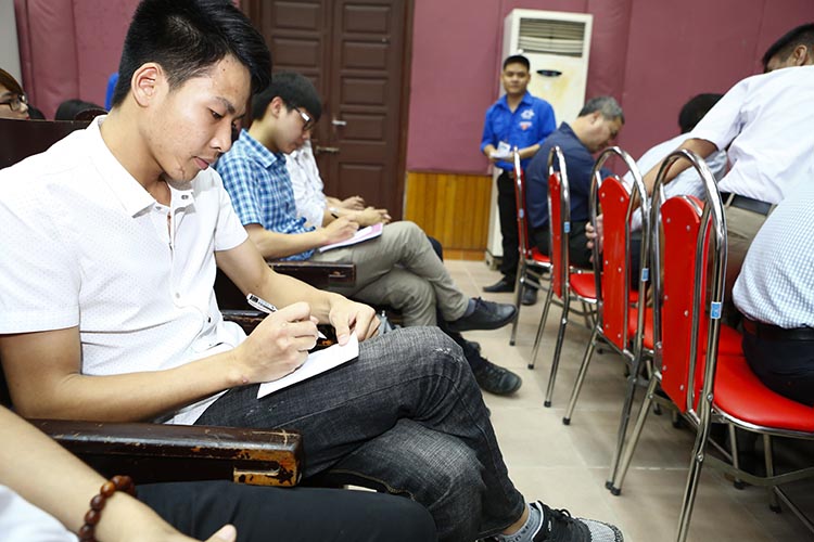 Các bạn sinh viên ghi các câu hỏi ra giấy và gửi lên cho ban tổ chức chương trình