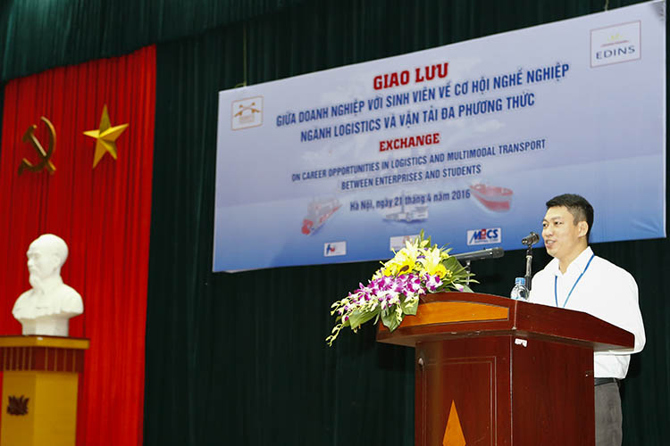 Với mục tiêu tăng cường hiểu biết cho sinh viên về ngành, cơ hội và kỹ năng nghề nghiệp. Sáng ngày 21/4/2016, Trường Đại học Công nghệ GTVT phối hợp với Công ty Cổ phần Tư vấn Đào tạo và Đầu tư phát triển EDINS đã tổ chức buổi "Giao lưu giữa doanh nghiệp và sinh viên về cơ hội nghề nghiệp trong ngành logistics và vận tải đa phương thức".